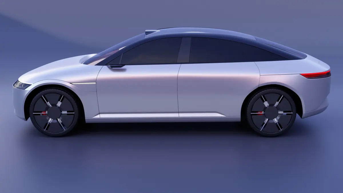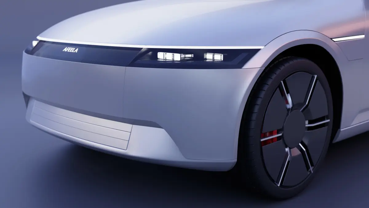 this is a 3d model of the new Sony and Honda built prototype of a new electric car. The vehicle, which is branded Afeela and looks like a midsized sedan