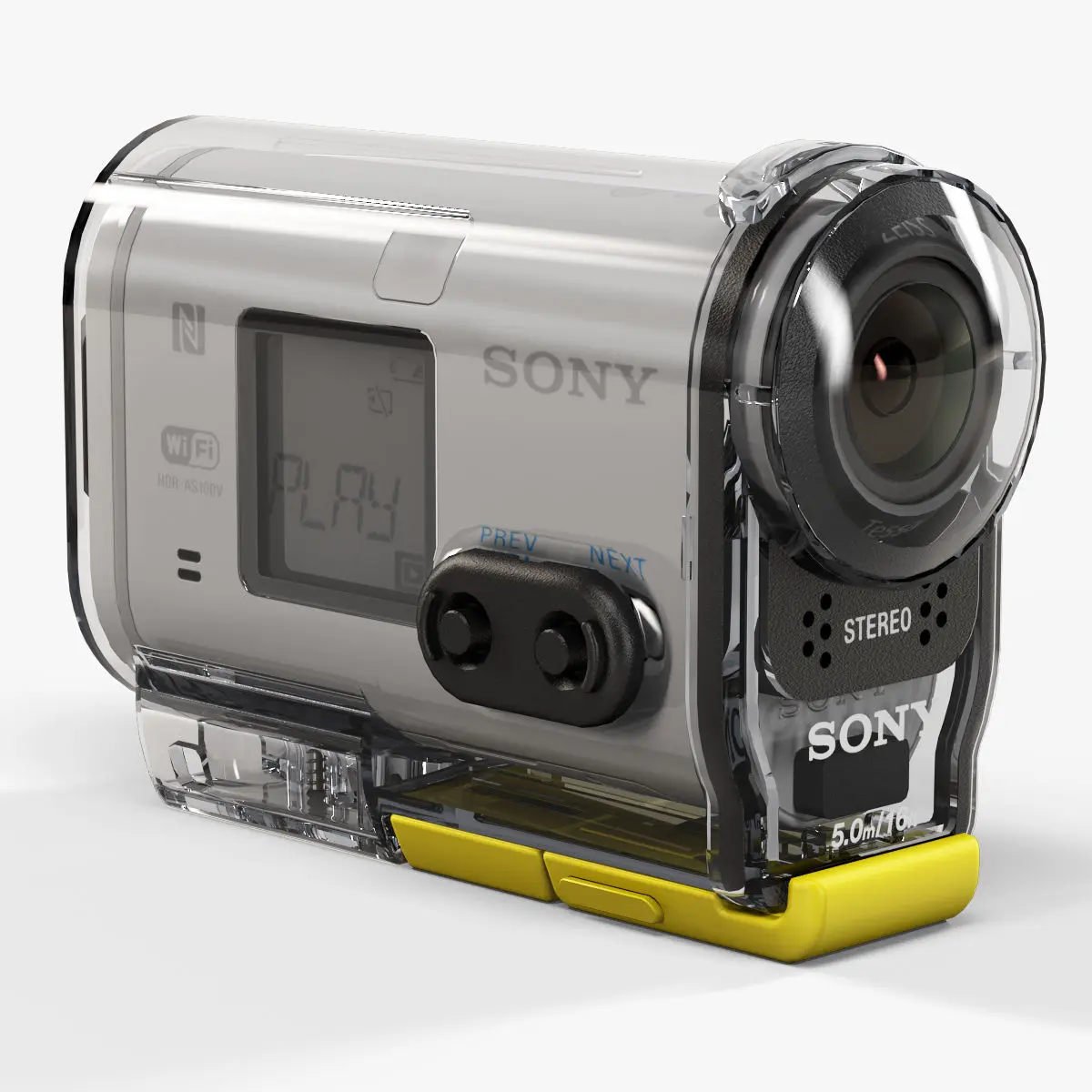 • Let me present to you high-quality low-poly 3D model Sony HDR-AS100V with Waterproof Case SPK-AS2. This model can be used in various fields 3D Graphics such as game development, advertising, interior design, motion picture art, visualization, etc... Modeling was made with ortho-photos of real action camera that is why all details of design are recreated most authentically.