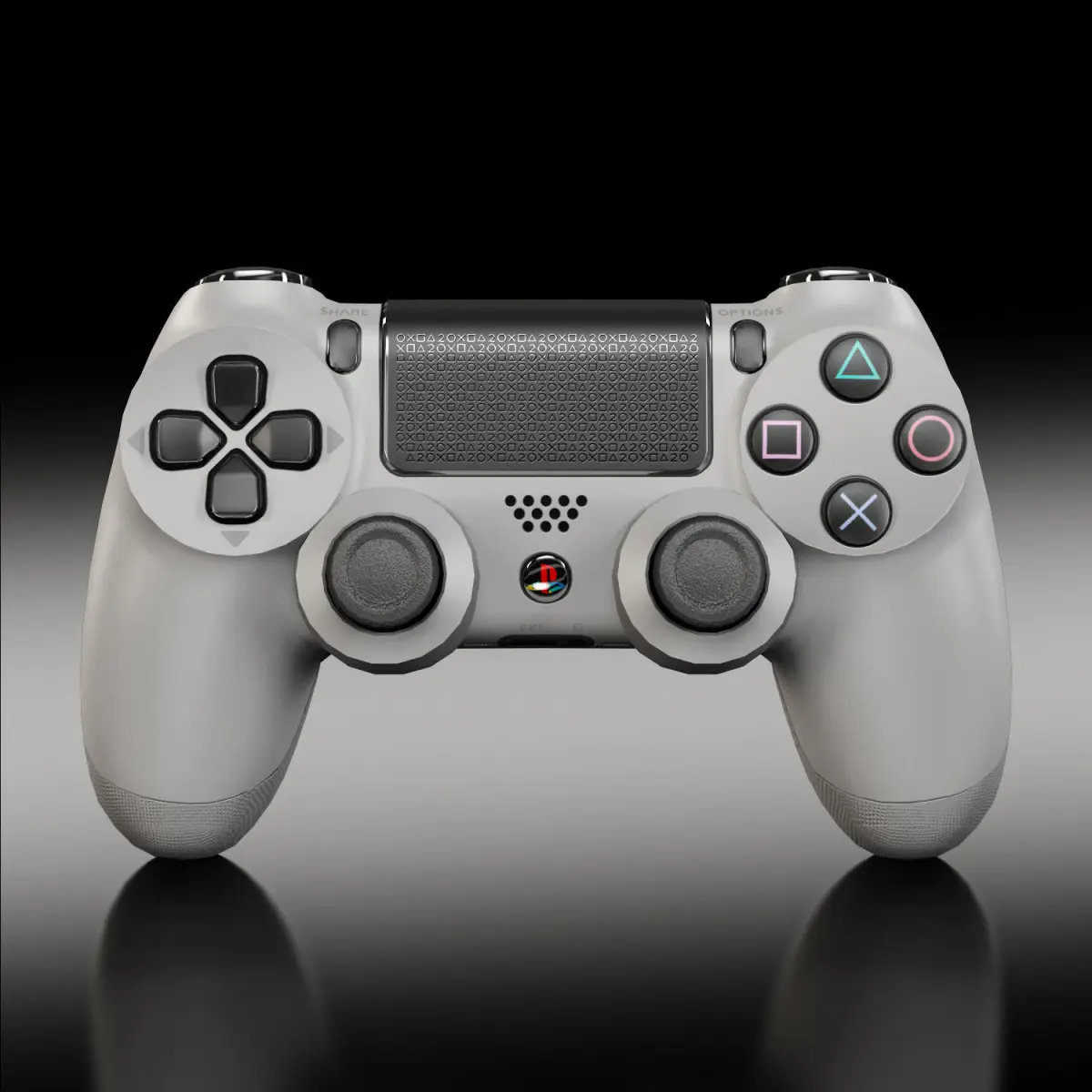 • Let me present to you high-quality low-poly 3D model Sony PlayStation 4 Game Controller Grey 20th Anniversary Edition. This model can be used in various fields 3D Graphics such as game development, advertising, interior design, motion picture art, visualization, etc... Modeling was made with ortho-photos of real controller that is why all details of design are recreated most authentically.