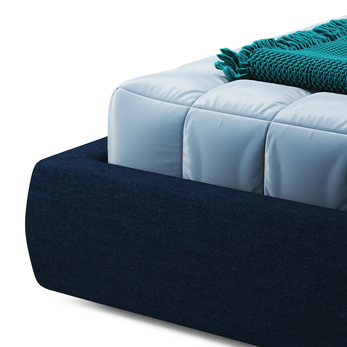 SOPHIE - Wooden frame with polyurethane foam upholstery. Wooden slats spring. Upholstery in polyurethane covered in nylon light velvet fabric. Feet or bedframe available in wengé stain, black chrome and in sanded bronze finish. Removable fabric cover. When in leather cover, optional sewing stitch on the bedframe can be required. Storage unit and double lifting storage unit on request. Headboard available with plain upholstery, with central sewing or buttons on customer’s specification.