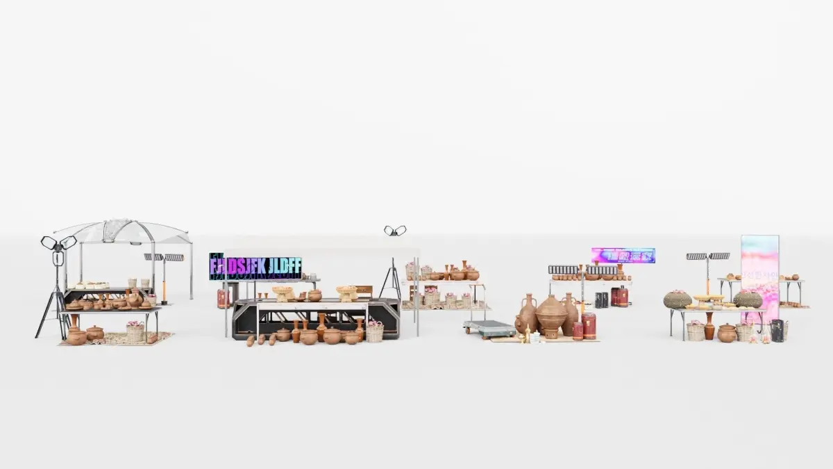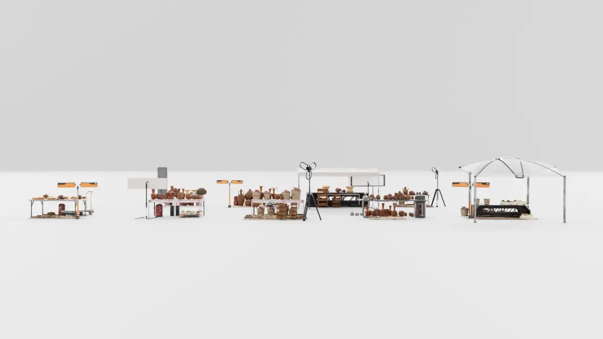 High resolution photo real 3D model of 8 Souk stands/stalls.Created in 3dsMax + substance painter, fully ready to renderContains textures + materials.Available as Fbx,Obj,USD and 3dsmax.It's part of a bigger collection of a total of 19 stands3Dsmax and CORONA