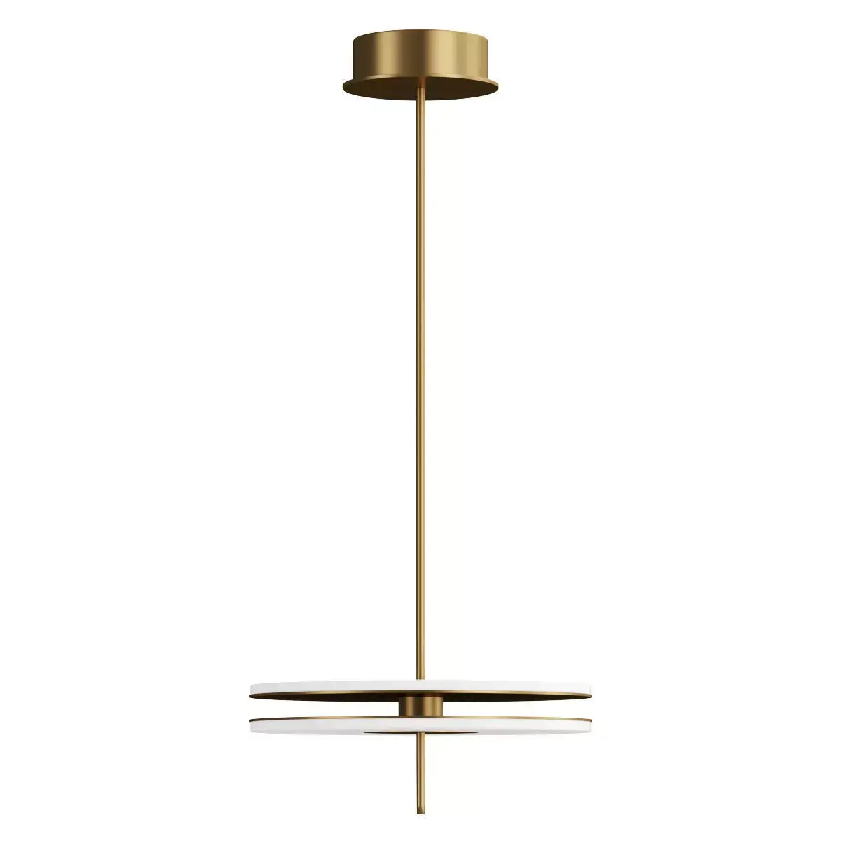 This is a high-quality 3D model of the Soul LED Pendant, a modern and minimalist lighting fixture that makes a bold statement. The model accurately captures the lamp's unique design, featuring two flat, disc-shaped shades that appear to float in a striking configuration. Its clean lines and geometric form are beautifully contrasted with a luminous, integrated light source, creating a sense of both weight and weightlessness.