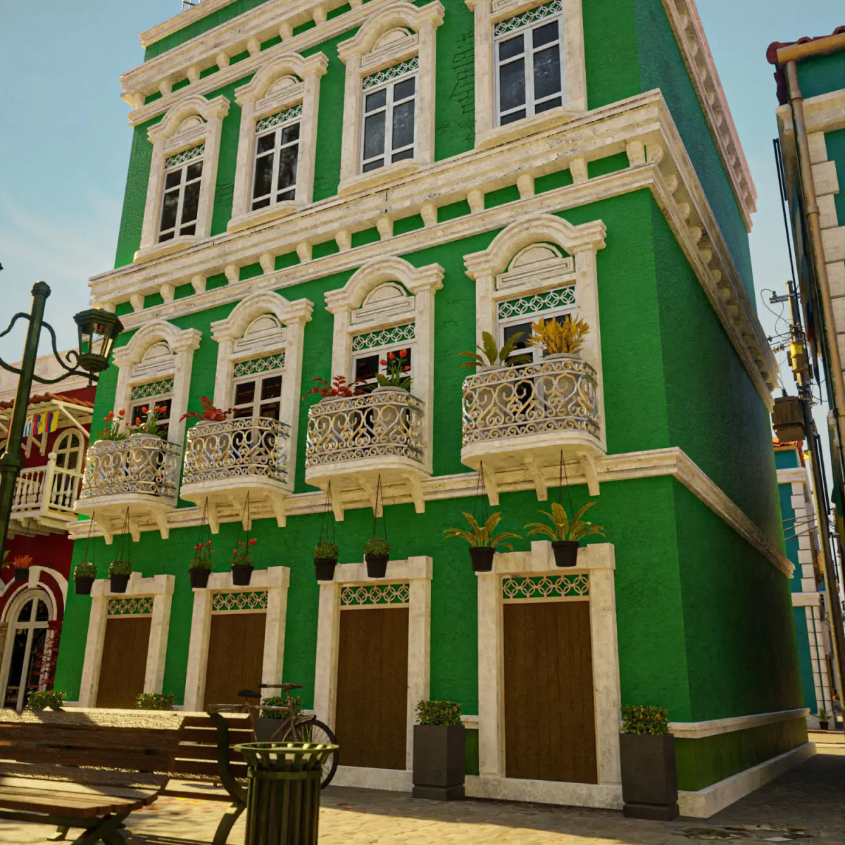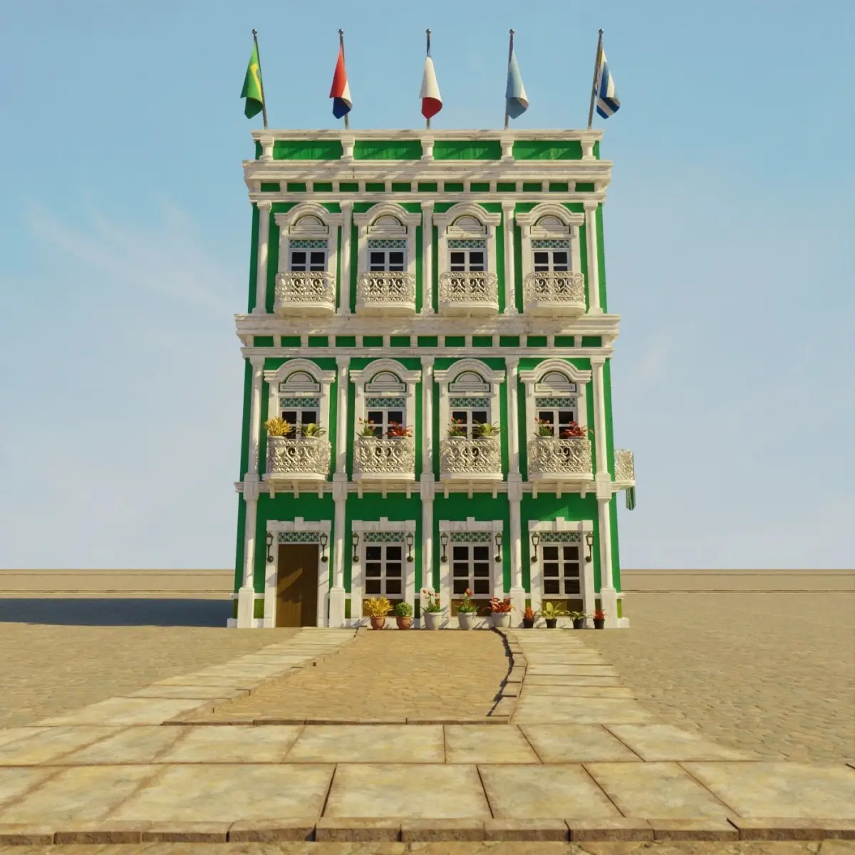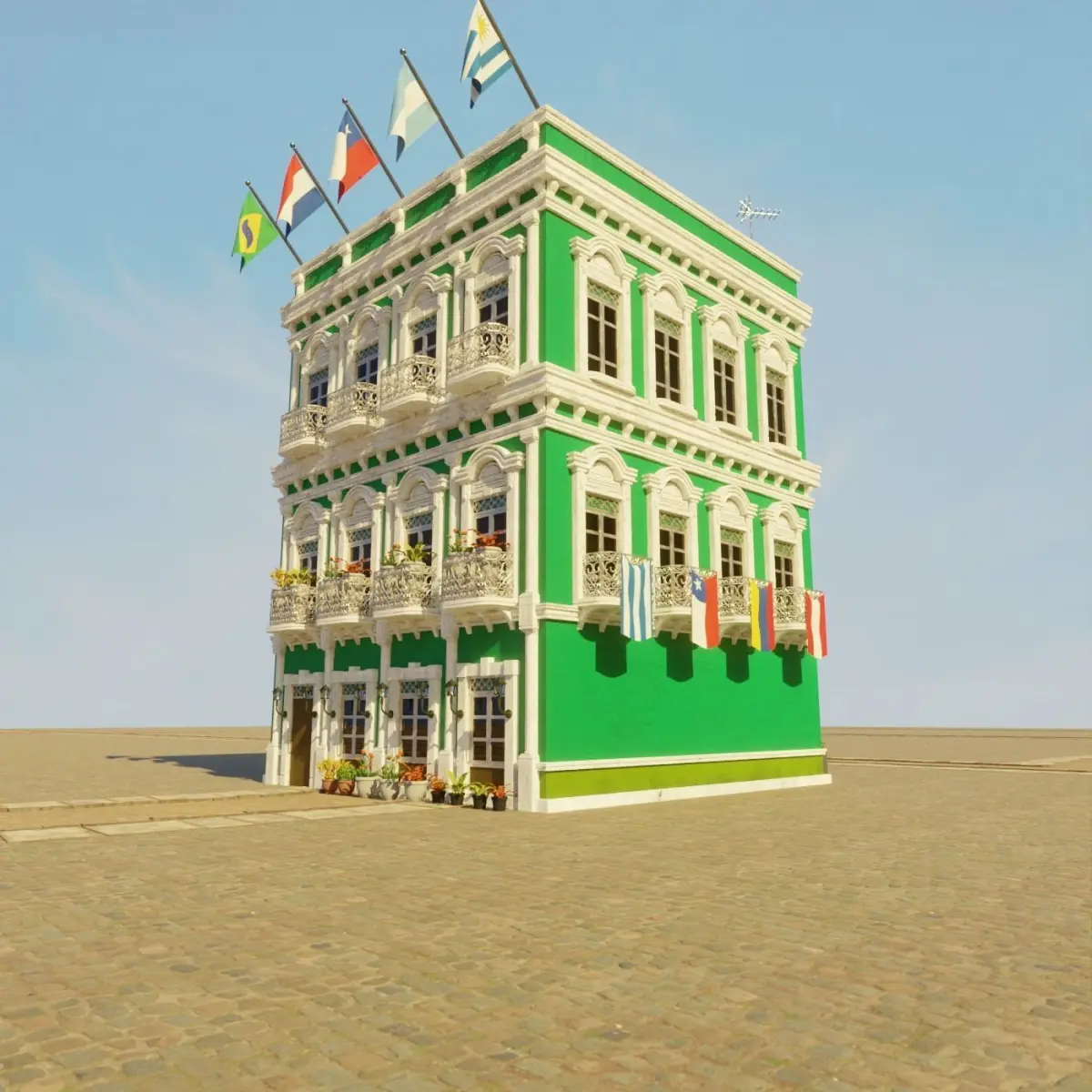 a model of a South American Building . everything is handmade by me with attention to detail, really good model to use for film, VFX, or game. 2K texture included. PBR ready. normal maps, specular, roughness etc. no triangle or ngon. only quad. uv mapped. medium poly 3d model. easy if you want to change the texture.(all pbr texture included in the pack). this is part of my South American Building Pack. be sure to check my page. save more by buying the pack. thank you. You can find demo Scene files for this collection on my page.