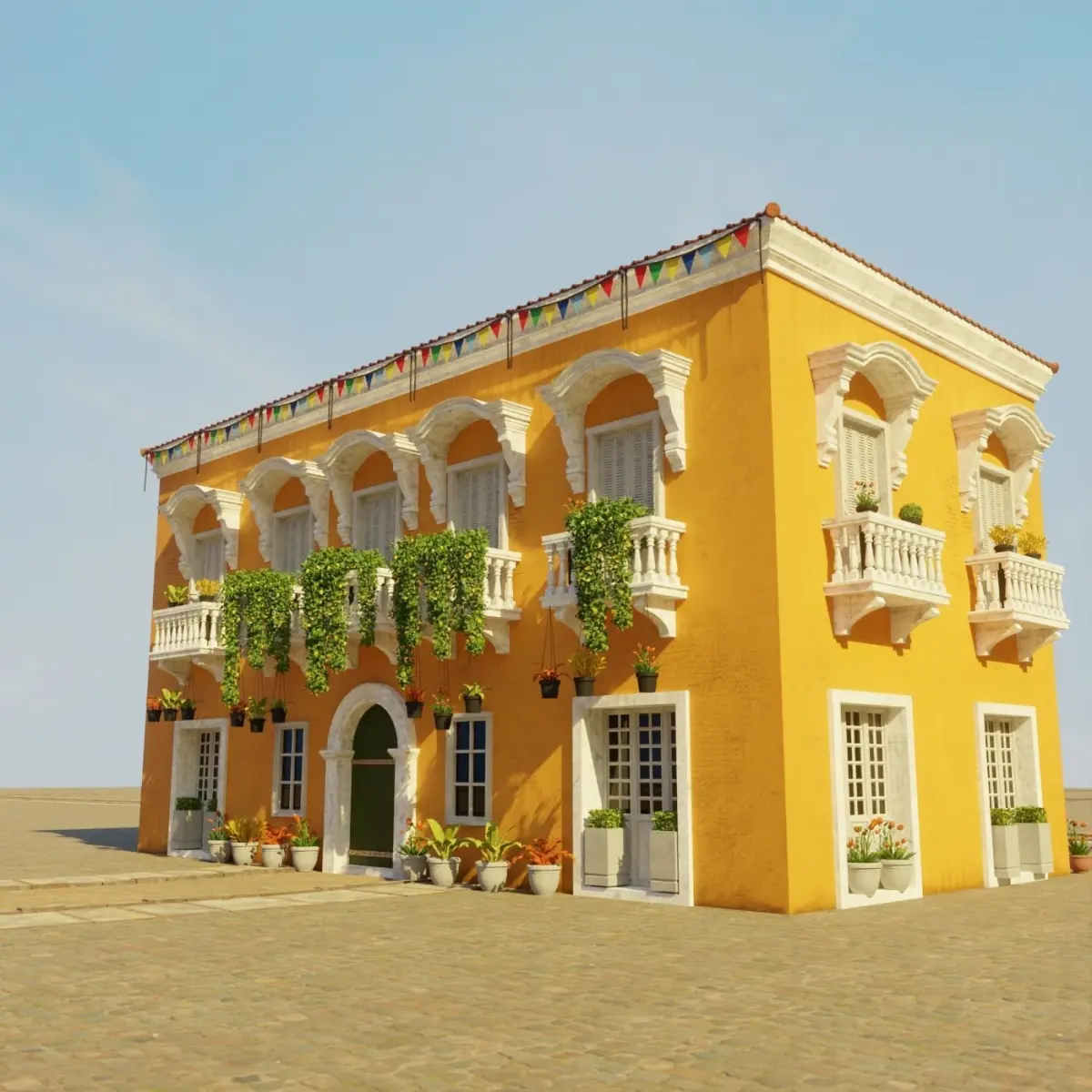 a model of a South American Building . everything is handmade by me with attention to detail, really good model to use for film, VFX, or game. 2K texture included. PBR ready. normal maps, specular, roughness etc. no triangle or ngon. only quad. uv mapped. medium poly 3d model. easy if you want to change the texture.(all pbr texture included in the pack). this is part of my South American Building Pack. be sure to check my page. save more by buying the pack. thank you. You can find demo Scene files for this collection on my page.