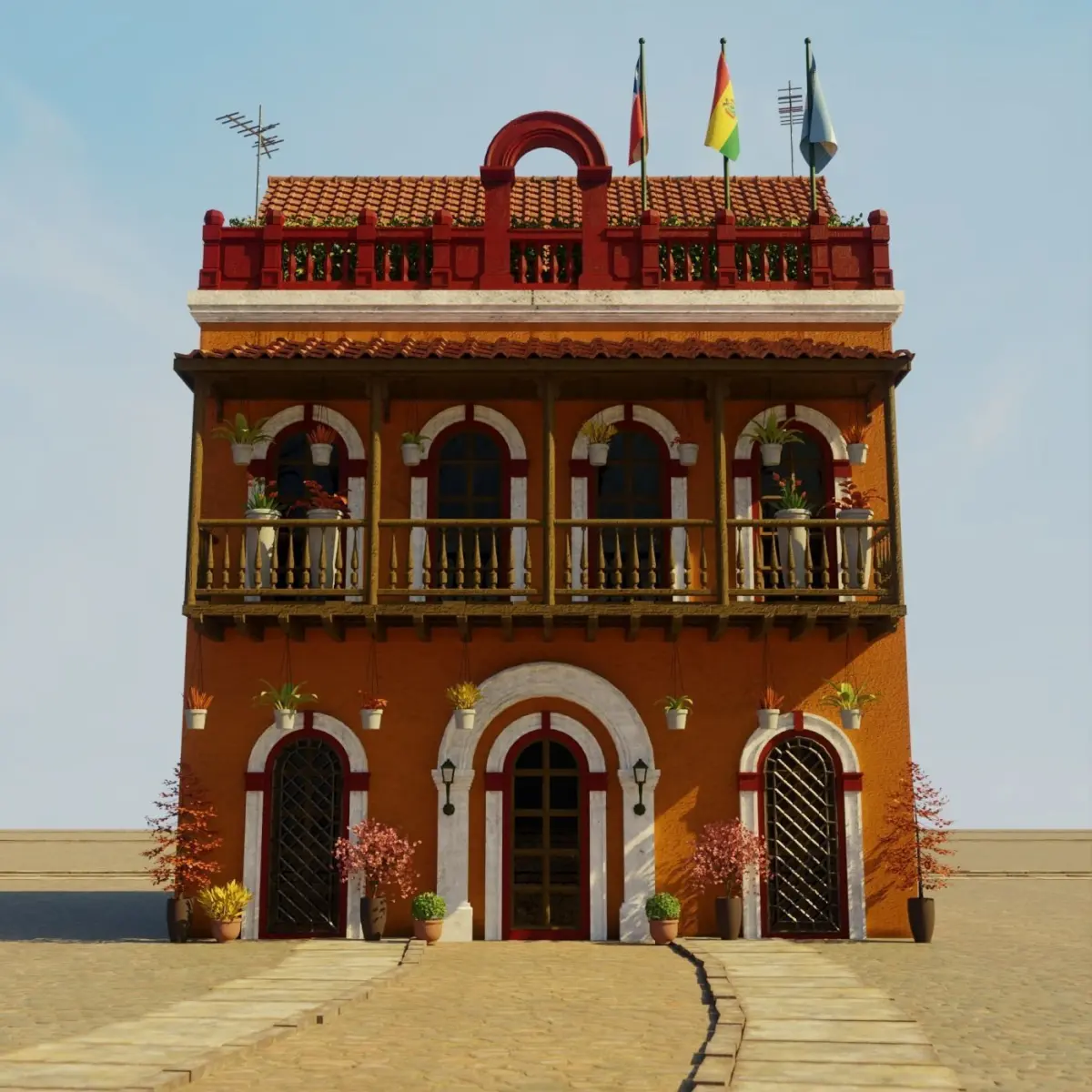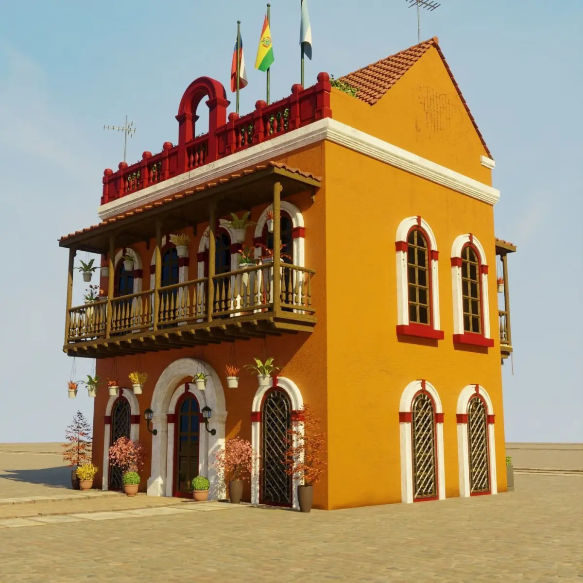 a model of a South American Building . everything is handmade by me with attention to detail, really good model to use for film, VFX, or game. 2K texture included. PBR ready. normal maps, specular, roughness etc. no triangle or ngon. only quad. uv mapped. medium poly 3d model. easy if you want to change the texture.(all pbr texture included in the pack). this is part of my South American Building Pack. be sure to check my page. save more by buying the pack. thank you. You can find demo Scene files for this collection on my page.