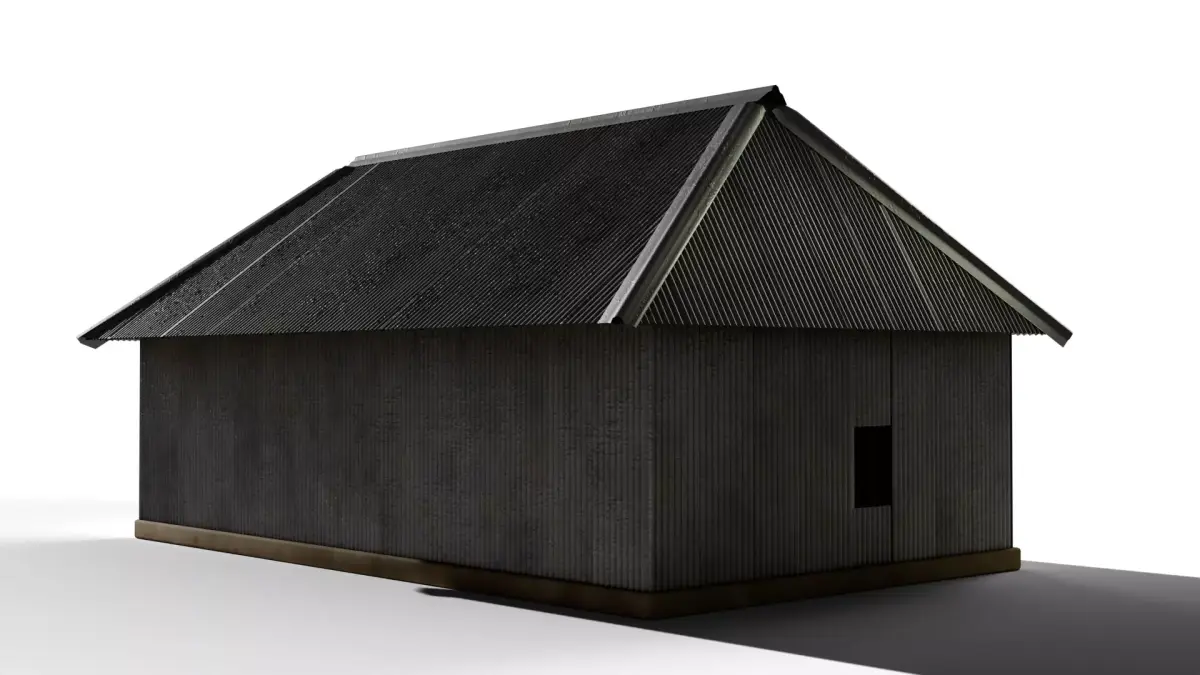 - Detailed corrugated metal wall and roof panels.