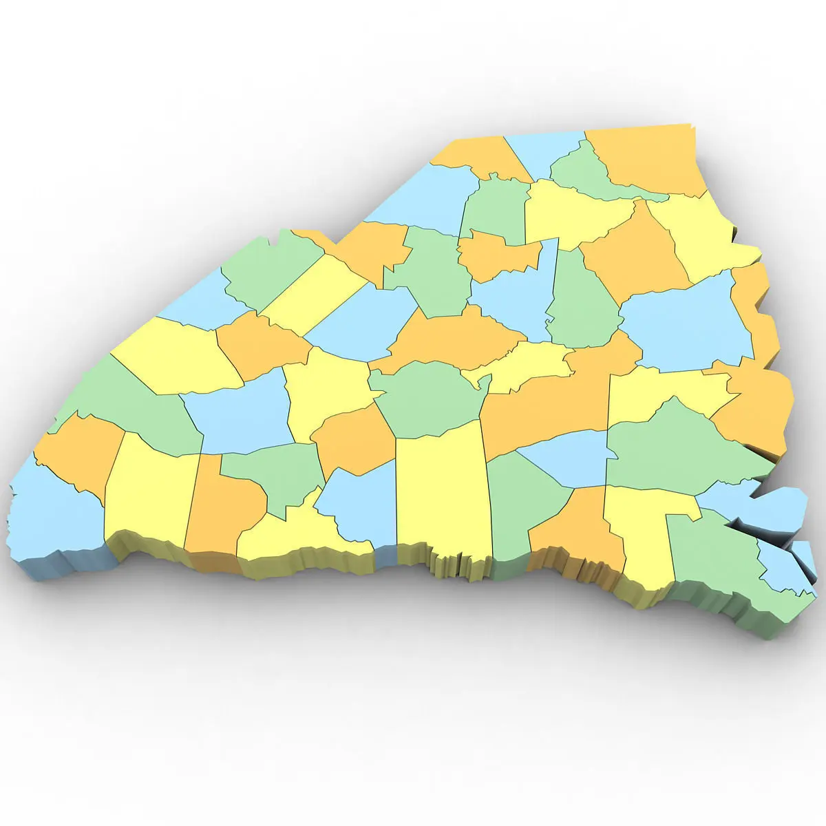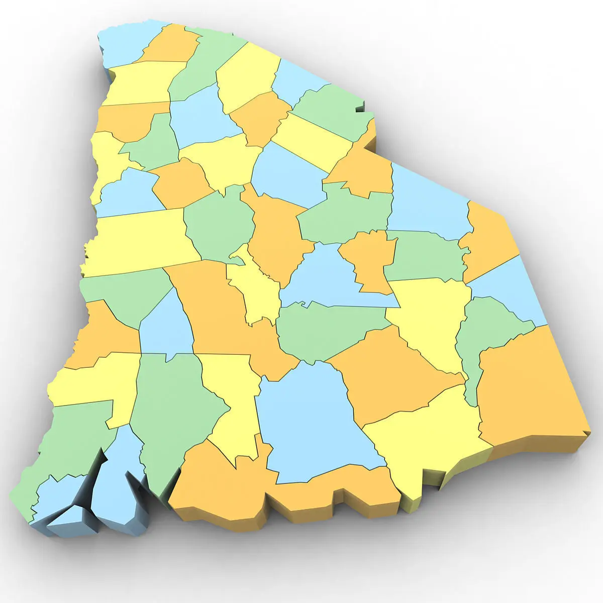 3d Model of the Political Map of South Carolina. Features every county in the state. The modifier stack is uncollapsed allowing for easy change of extrusion settings.