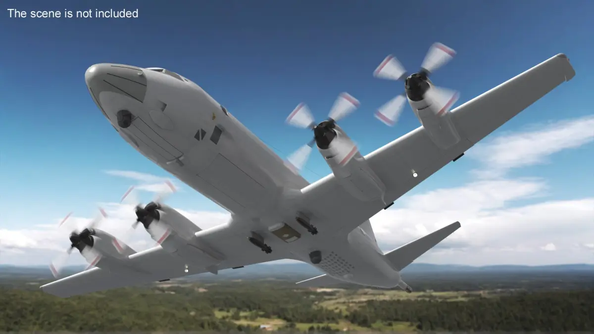 South Korea P3 Orion Anti Submarine Plane Rigged for Cinema 4D is a three-dimensional model of a versatile multi-engine reconnaissance plane, designed for maritime patrol and anti-submarine warfare.