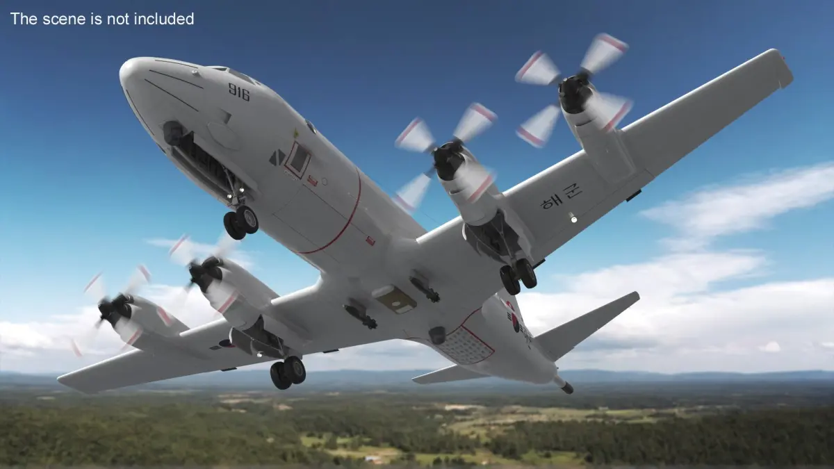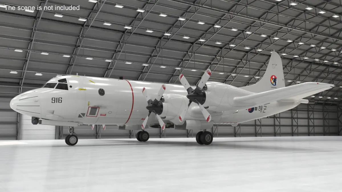 South Korea P3 Orion Maritime Reconnaissance is a three-dimensional model of a maritime patrol and reconnaissance aircraft used by the South Korean Navy.