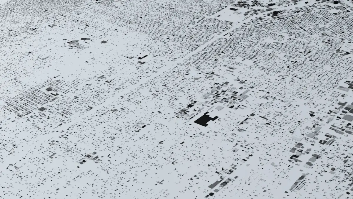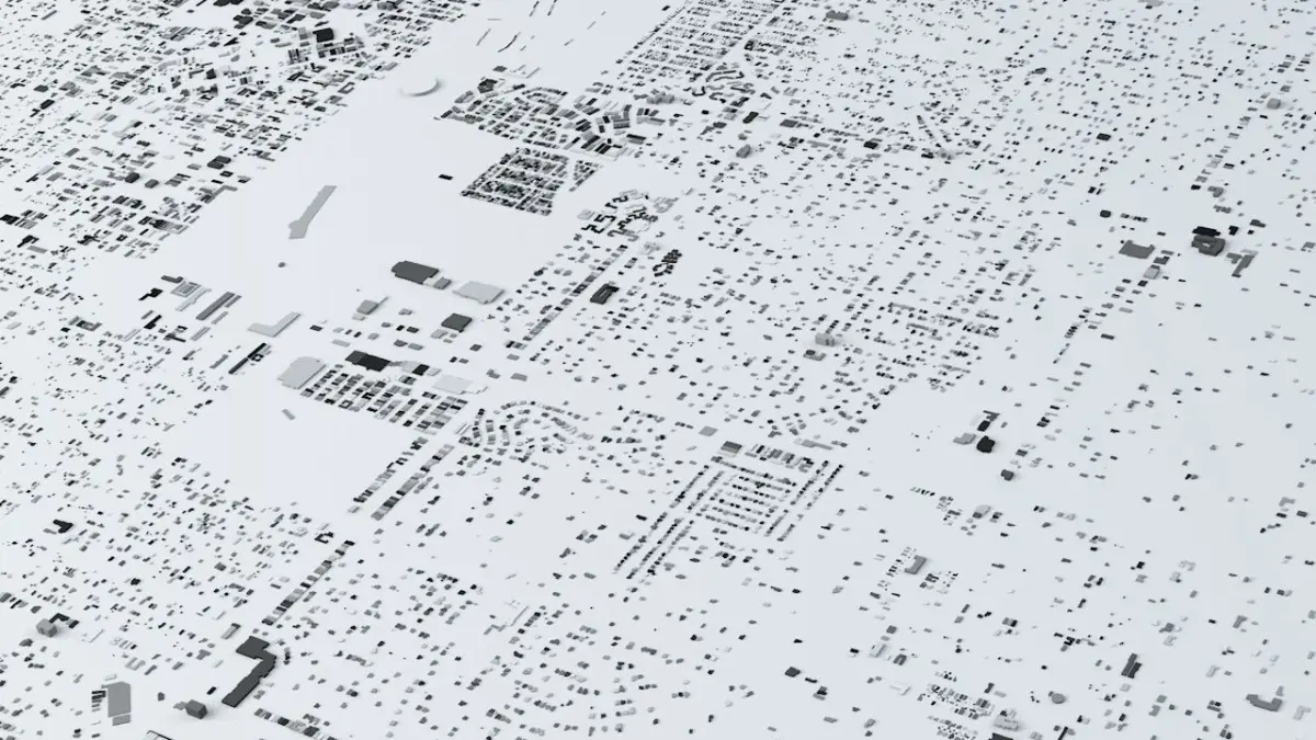 - the model is positioned on a flat surface (all buildings are on the “floor” - no elevation data included)