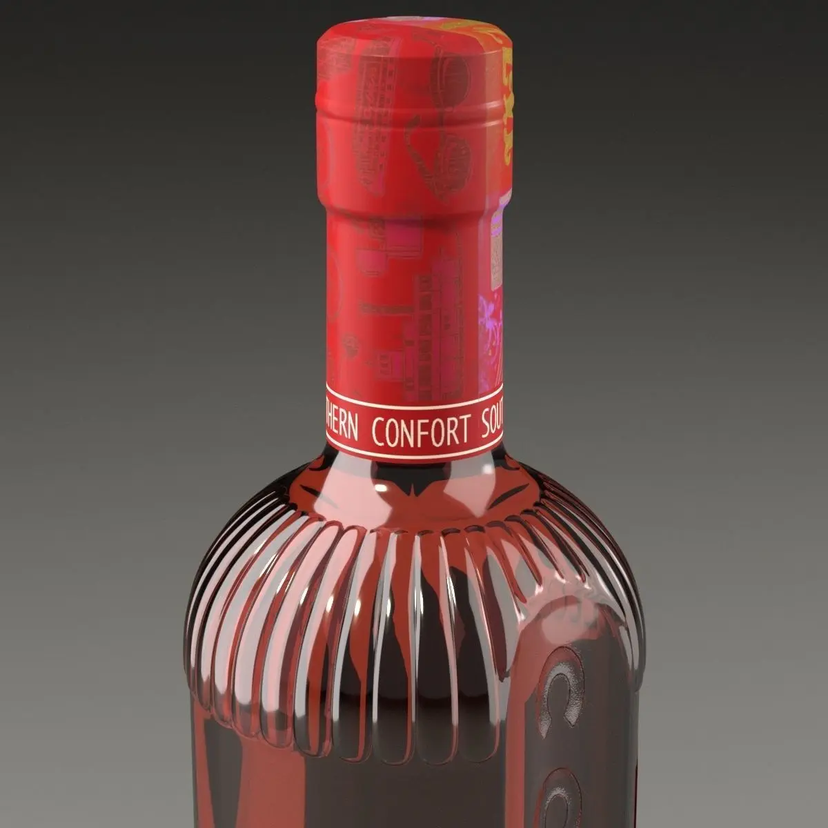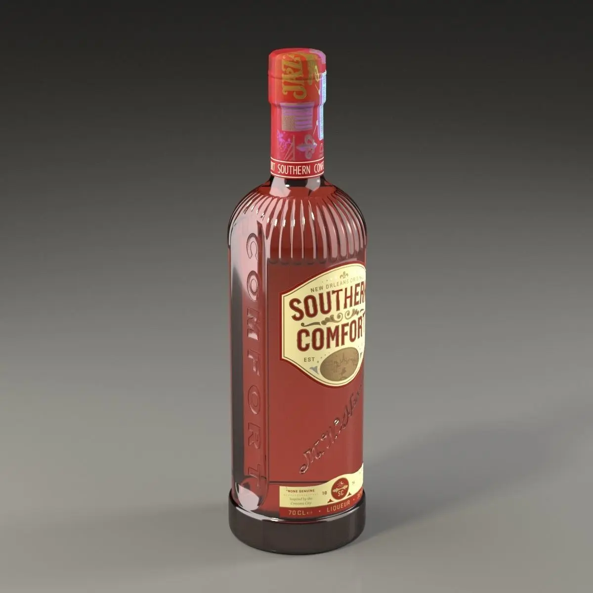 This is a 3d model of a bottle of Southern Comfort.