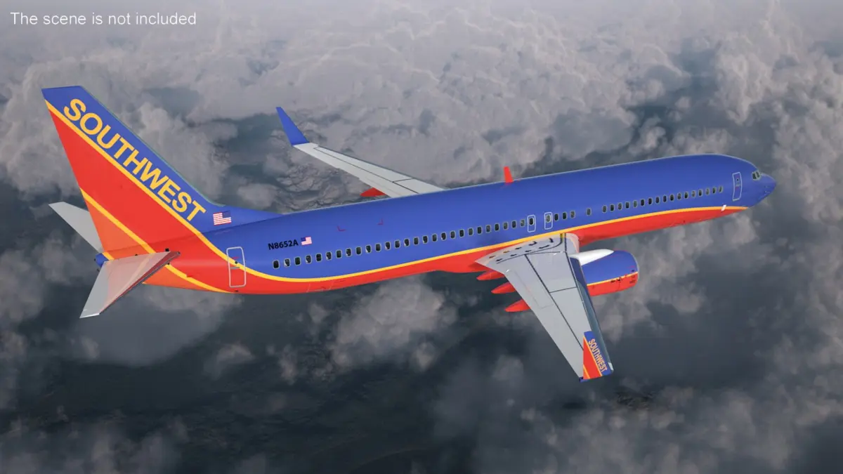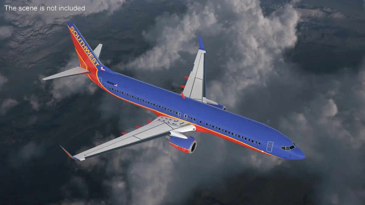 Southwest Airlines Boeing 737-900 with Interior Rigged is a 3d model of commercial airliner, representing a popular aircraft in the aviation industry.
