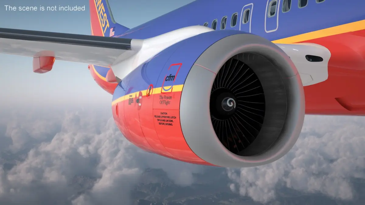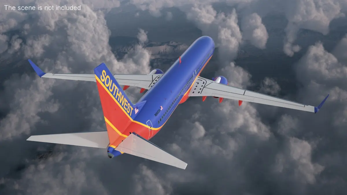 Southwest Airlines Boeing 737-900 with Interior Rigged for Maya is a 3d model of commercial airliner, representing a popular aircraft in the aviation industry.