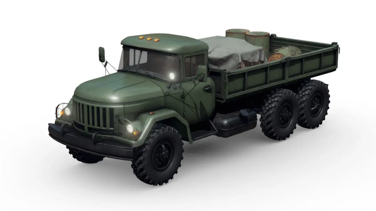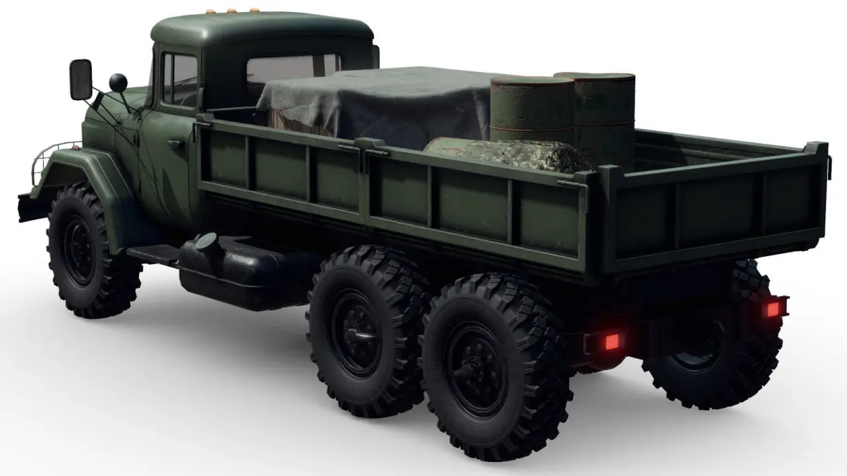 Separate materials for: cabin, interior, glass, frame, cargo bed and individual for all the props in cargo bed.