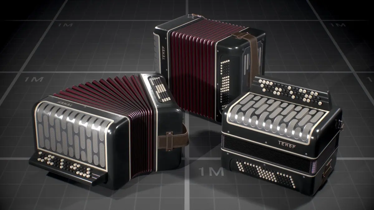 - 2 color variations of soviet button accordion , poly-count - 6760, 6760 and 5908 triangles .