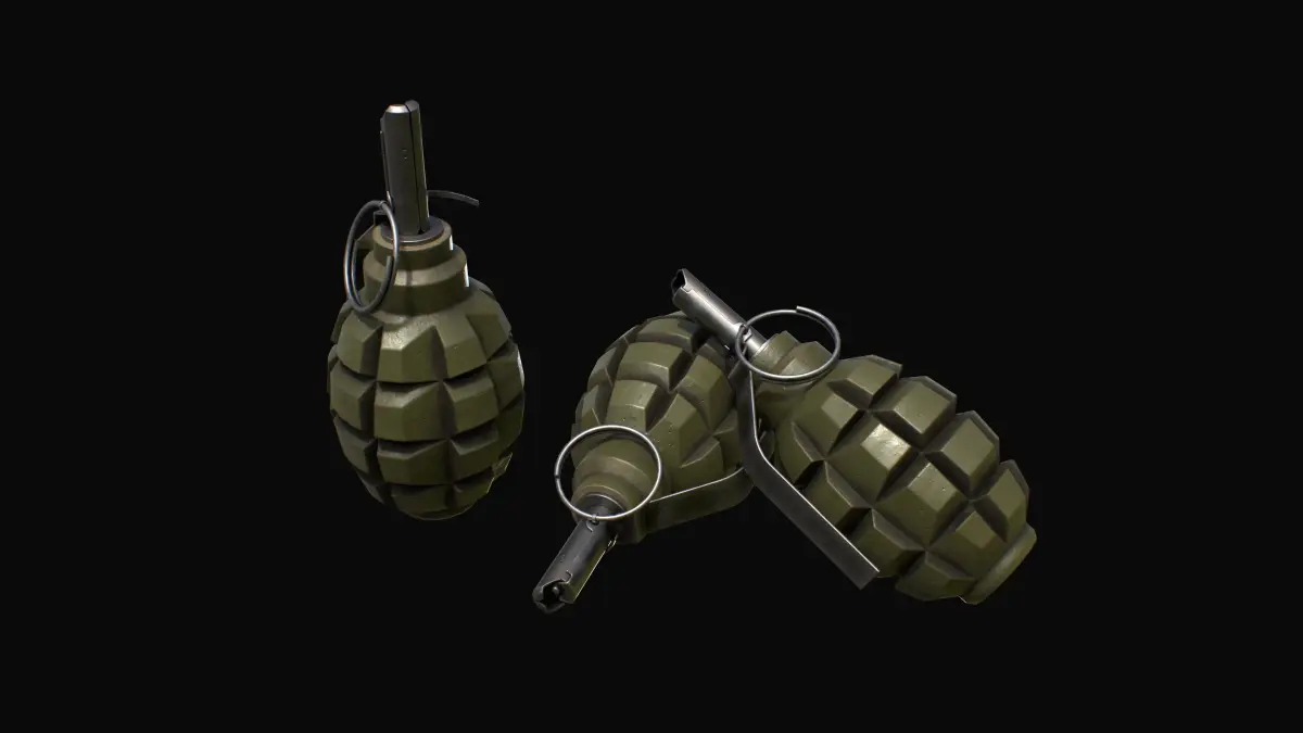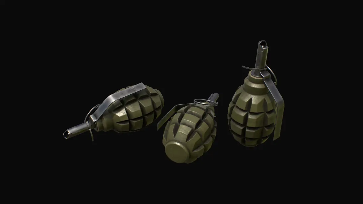 High quality low-poly model F-1 grenade, with PBR textures in 4k, also including textures for Unity and UE5 game engines. Game ready model F-1 for PBR game engines, renderers, first Person Shooters, VR games, and your other projects.