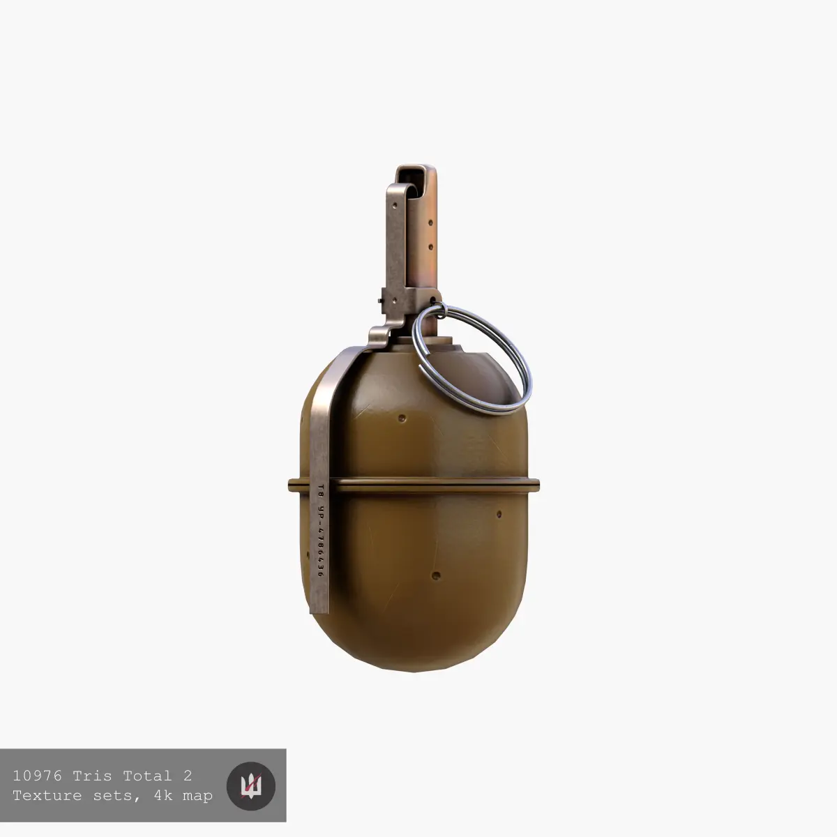 Handel Grenade RGD 5 The RGD5 hand grenade is a fragmentation grenade that was used by the Soviet Union and other countries during the Cold War. It has a cylindrical shape and weighs about 350 grams. The grenade is activated by removing a safety pin and throwing it towards the target. Upon detonation, it releases a large number of metal fragments in all directions, causing damage to anything within the blast radius. The RG-5 was a widely used and effective weapon during its time, but has since been largely replaced by more advanced grenades.Tris - 10976Texture map size - 4k Texture List Base Color Height Metallic Ambient Occlusion Normal Map RoughnessCreated in Maya 2021 Textured in adobe substance painter Render in Marmoset Toolbag 4