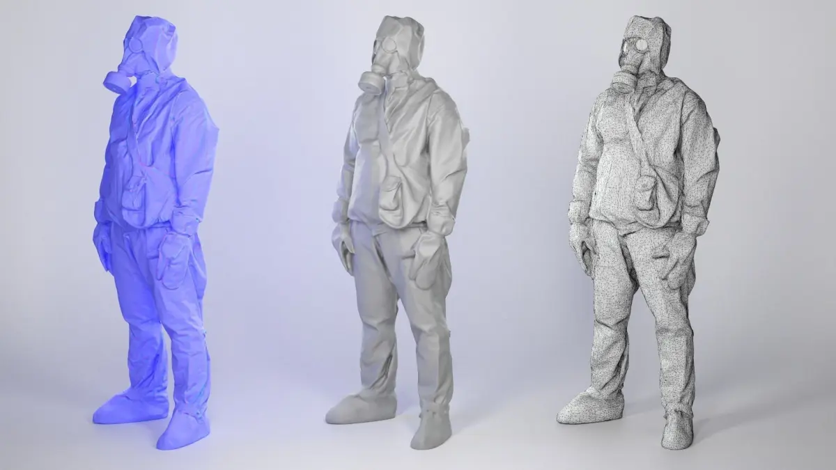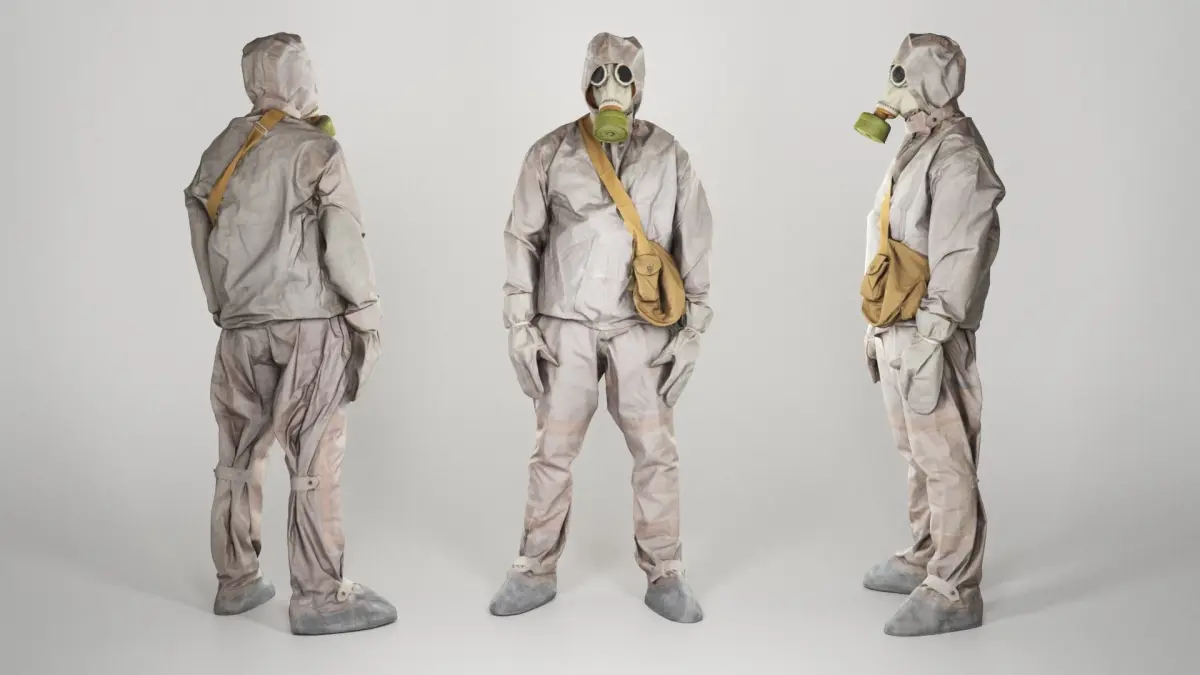 This is a true human size and detailed model of a Stalker inspired character - a liquidator of nuclear catastrophe in Chernobyl dressed in authentic real chemical protection commonly used in USSR in 80-90s. All props and suit are original. The model is captured in casual pose to be perfectly matching to variety of sceens, including architectural visualization, background character, Chernobyl nuclear catastrophe reconstruction, performance, etc.