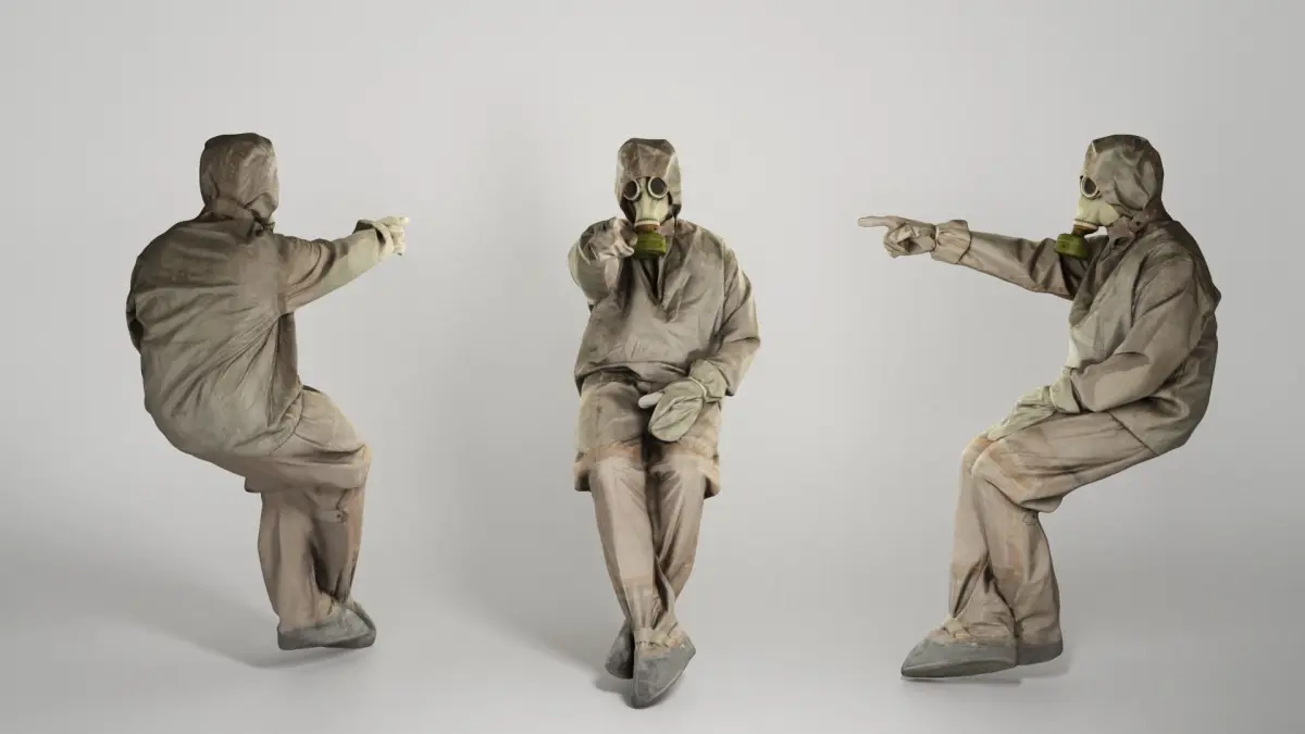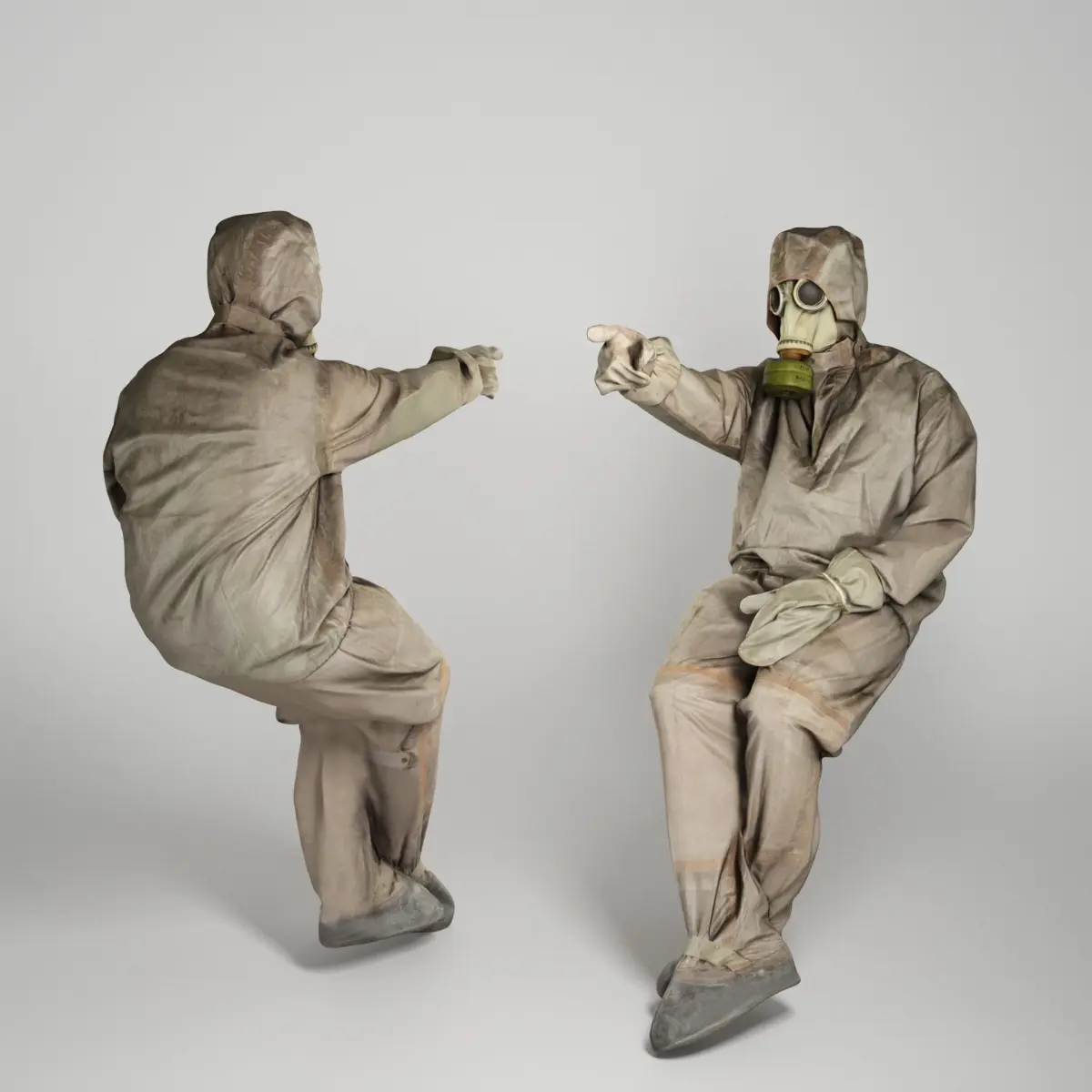 This is a true human size and detailed model of a Stalker inspired character - a liquidator of nuclear catastrophe in Chernobyl dressed in authentic real chemical protection commonly used in USSR in 80-90s. All props and suit are original.The model is captured in casual pose to be perfectly matching to variety of sceens, including architectural visualization, background character, Chernobyl nuclear catastrophe reconstruction, performance, etc.