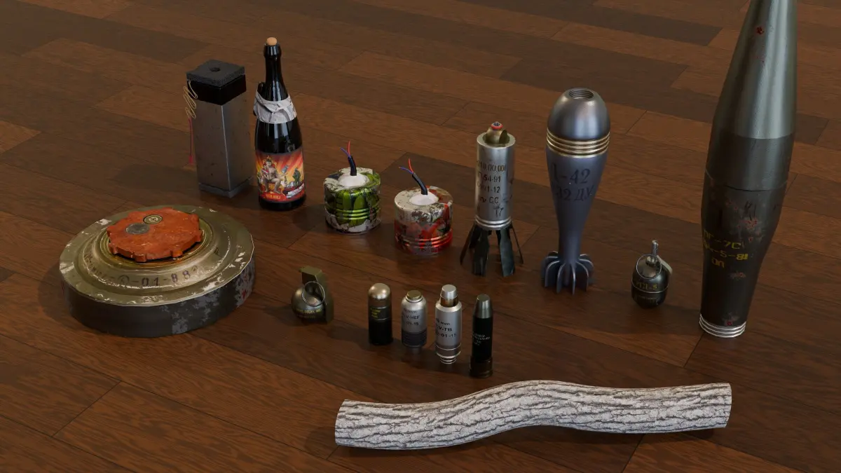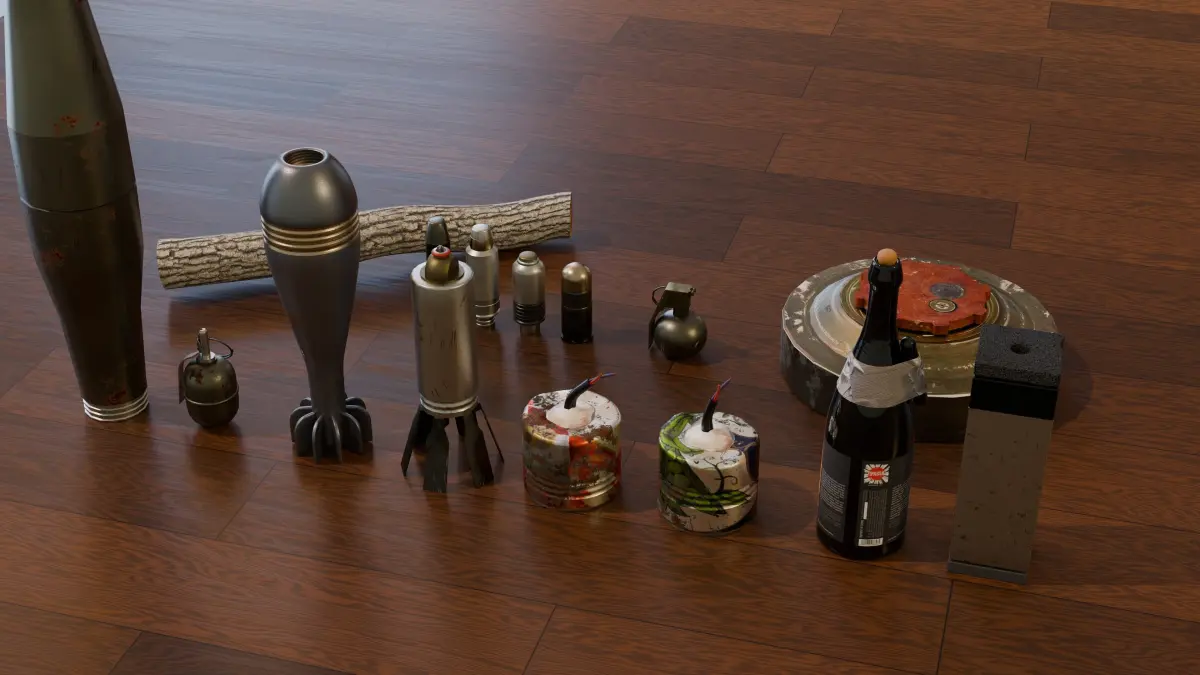 Various ammunition presented here has been adopted by the Ukrainian military during the Russian invasion that began in 2022.It is a mix of Soviet stocks, Nato provided suppliers, and Improvised explosives.All models share a single set of 4k textures. Diffuse, Roughness, Metalness, Normal. A 6k Diffuse texture is included to best display the text on the models.