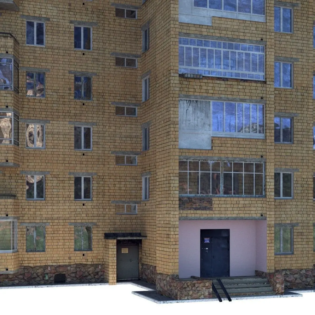 Soviet yellow nine-story 70s. Built up to the 90s.