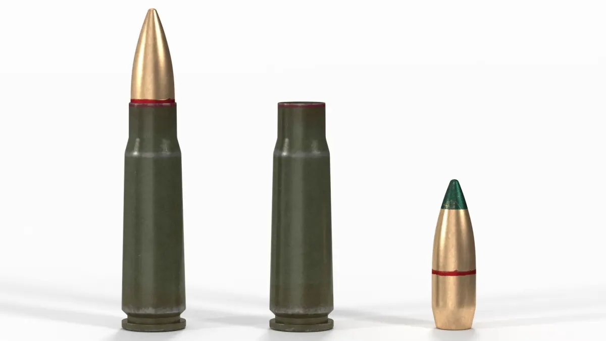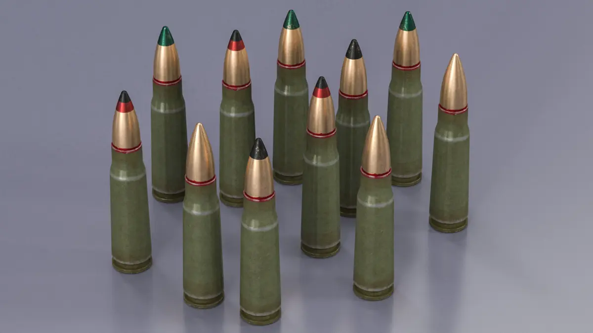 Soviet or Russian Cartridge 7,62x39 for AK-47, AKM, AK-15, SKS, RPD and RPK light machine guns.