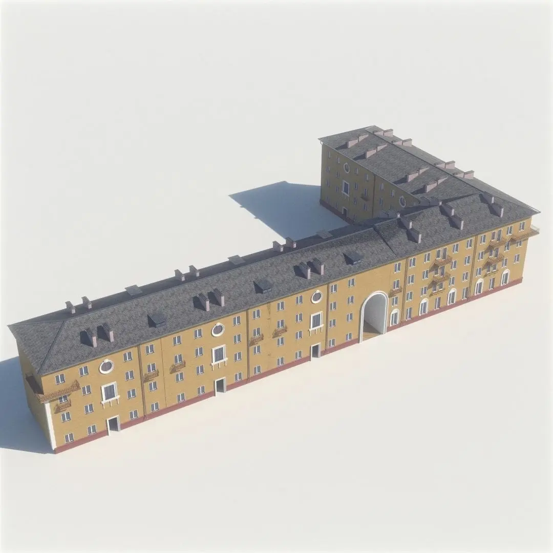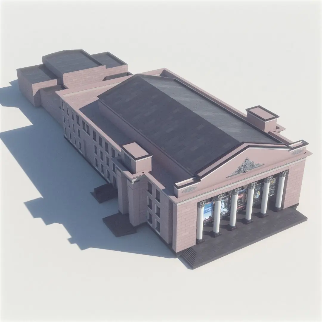 Collection of 10 houses old houses.A real street in the Russian city of Krasnoyarsk. Vavilov street. Represents several residential buildings, the administration building and the theater in Stalin's architecture.It is executed in 3D max without optimizations and counting of polygons, models of average detail with simple textures. Instanced similar objects.The roof is made of a Vray displacement.