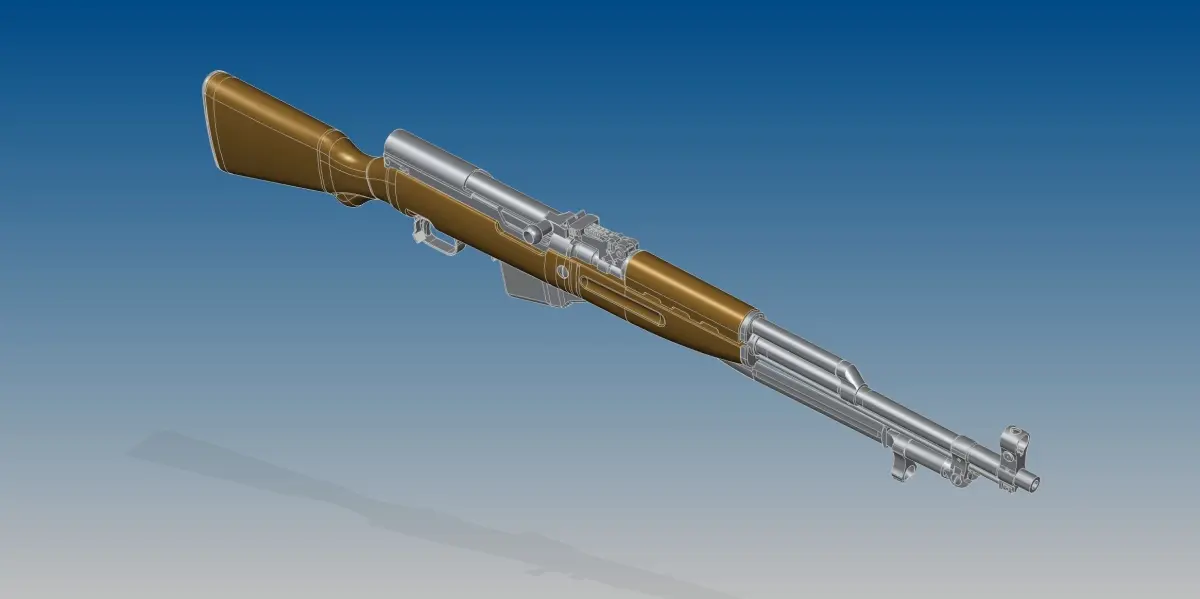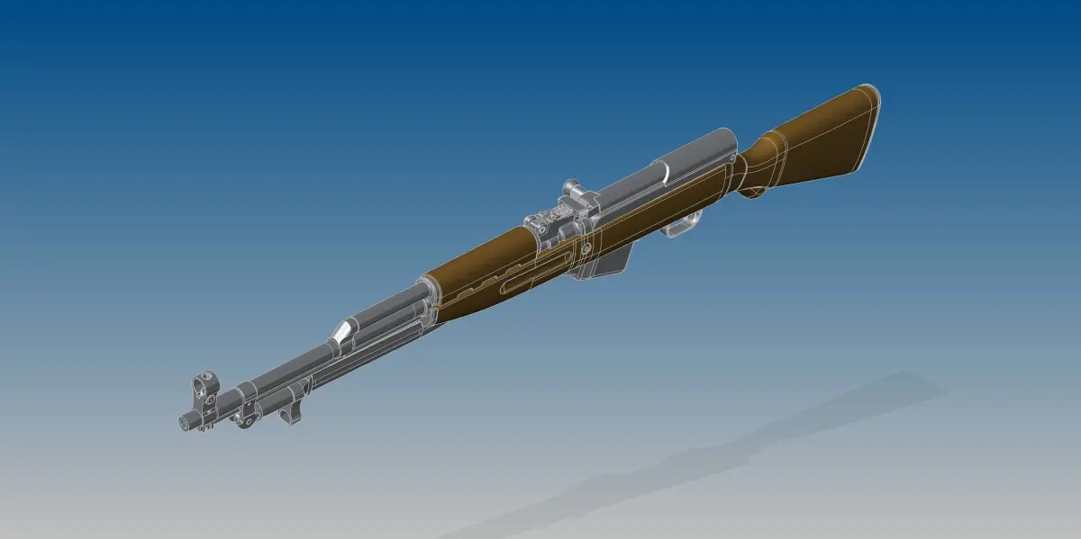 Full assembled model of Soviet rifle SKS and 7,62x39 mm bullet.