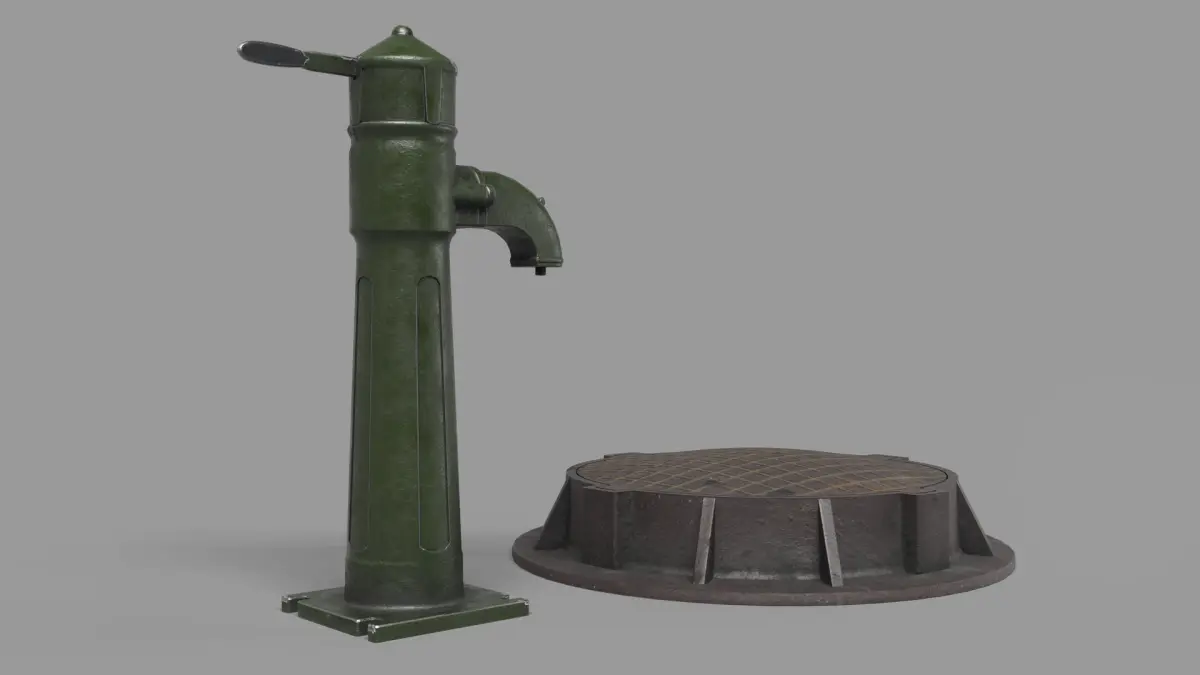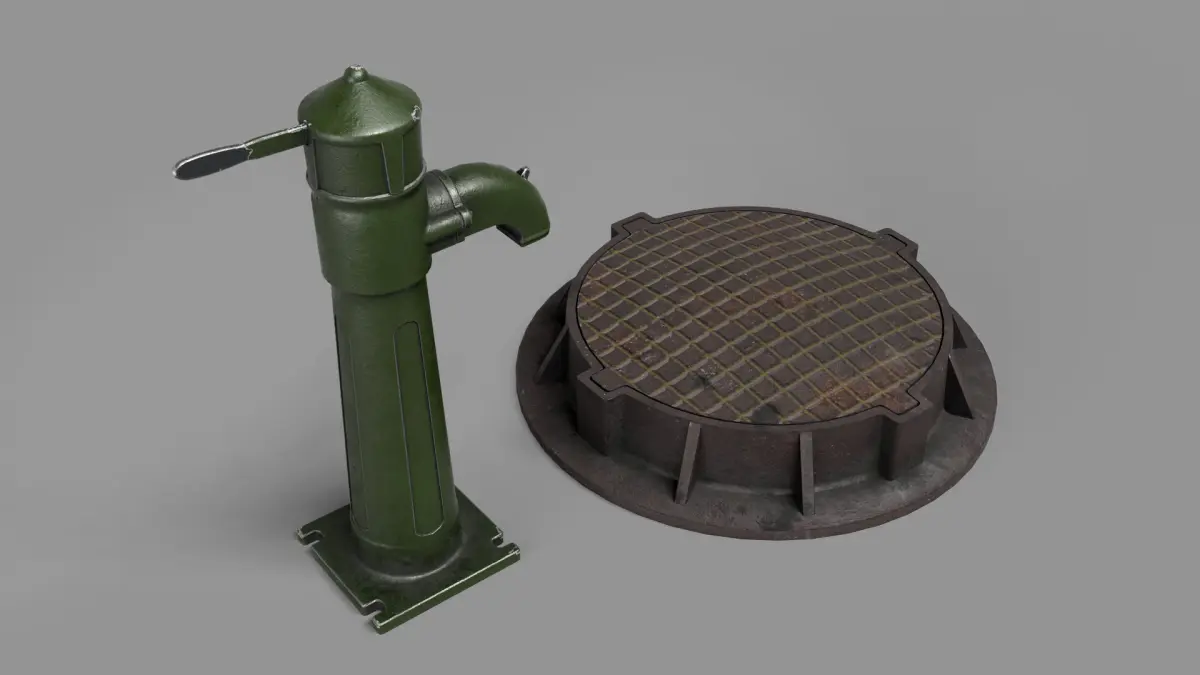 Low-poly (game ready) 3D model.The scene was created on real base. The height of column is 835mm.The diametr of hatch is 640mm.Scene is suitable for industrial visualizations and games.All textures are included.Models have Corona materials. Scale units millimetres. Model is fully textured using Substance Painter.