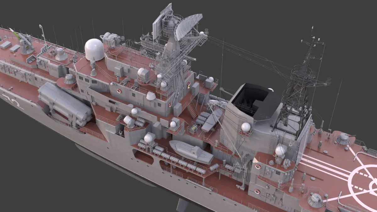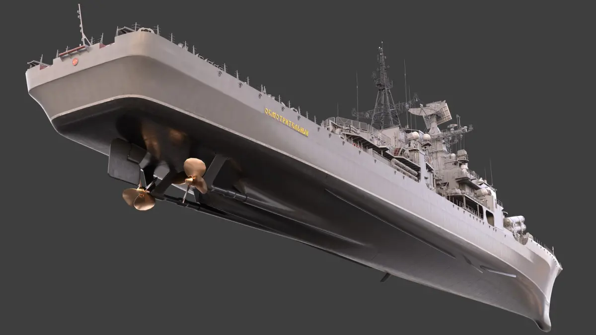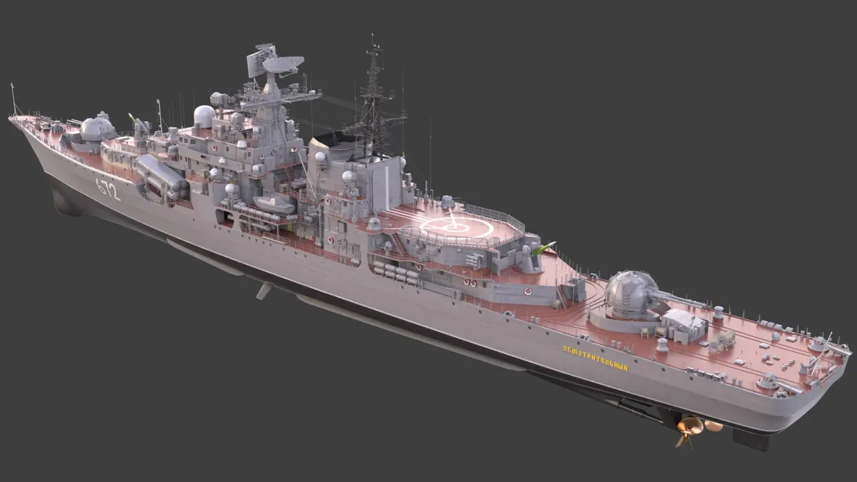 - Customizable markings — ship’s hull number can be removed via the supplied blank texture. Ship’s nameplate and Russian coat of arms are separate objects for easy removal.
