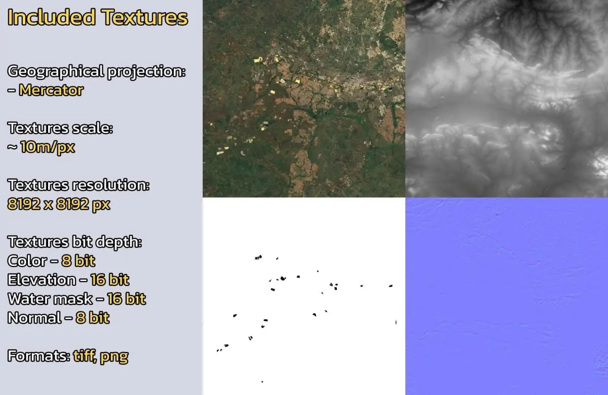 - Textures resolution: ~10m/px
