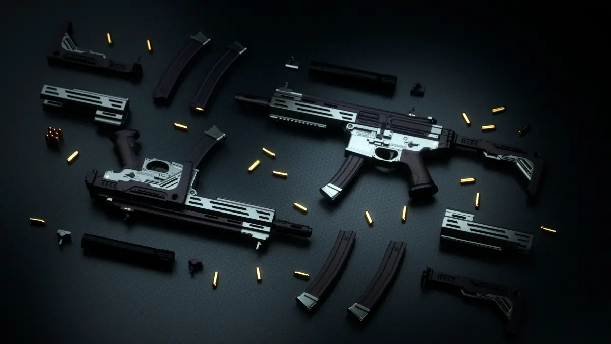 The adjustable and distinctiveness of this assembly lies in the fact that all minor parts such as the stock, handguard, pistol grip, sight, and magazine have a separate High resolution texture.
