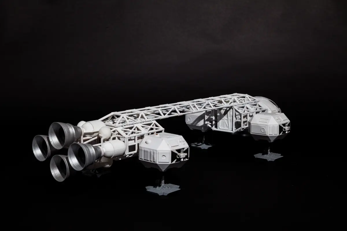 Space 1999 Eagle Transporter 22" model is half scale to the studio models used in the tv series, double the scale to 200% and you have a studio scale model that is accurate to the original tv models.Finished to a very basic standard, i have not sanded all of the parts and left the print lines to show how the parts come off the printer, all that has been done is a base coat of white with a little detailing for the photos.this model consists of 168 stl files and requires assembly.