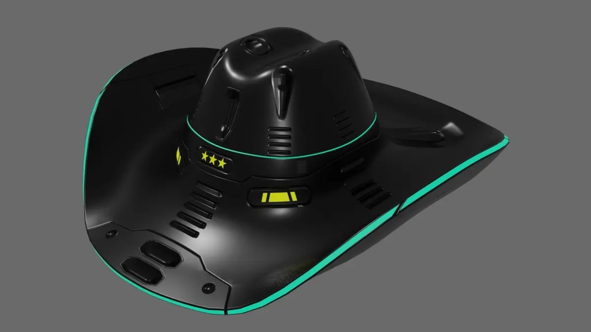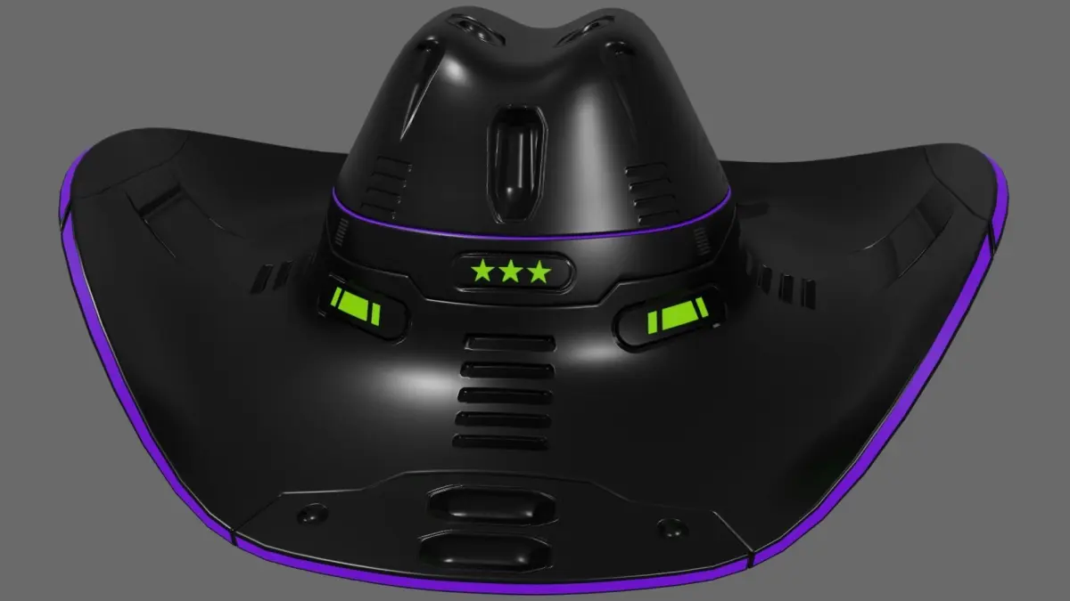 Inspired by the title of the movie Space Cowboys.Not what I expected but gave me an idea: changing an old leathery cowboy's hat into something more futuristic.The original old cowboy hat is also included.To change the color of the hat with the stars change the hue & saturation value. For the outline, it has a separate Light material included which also can be easily changed.