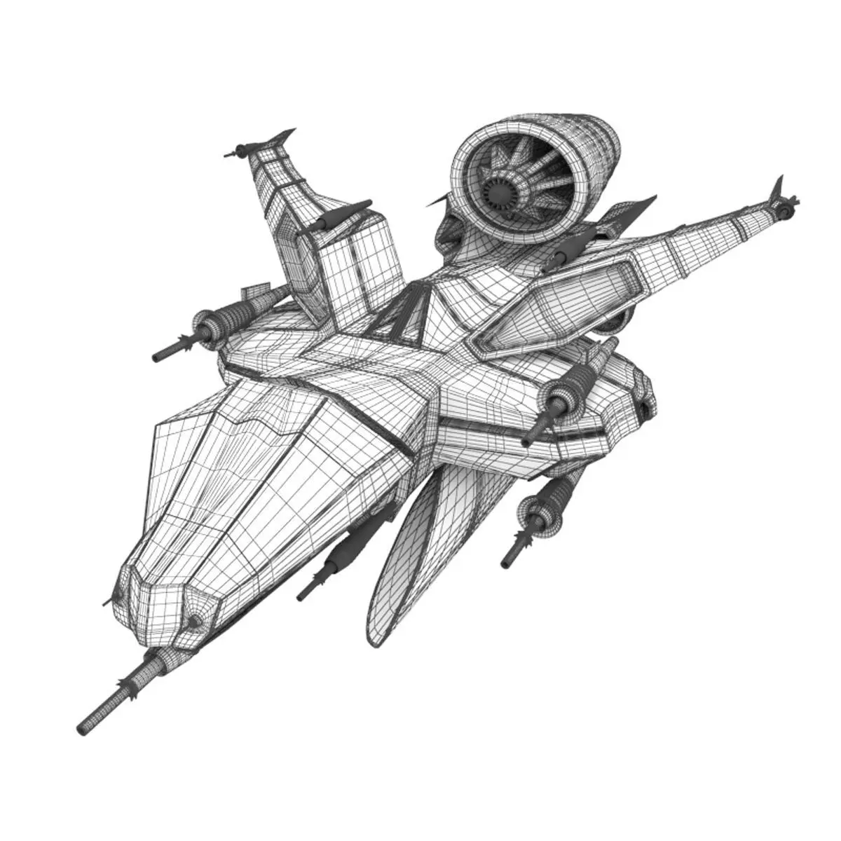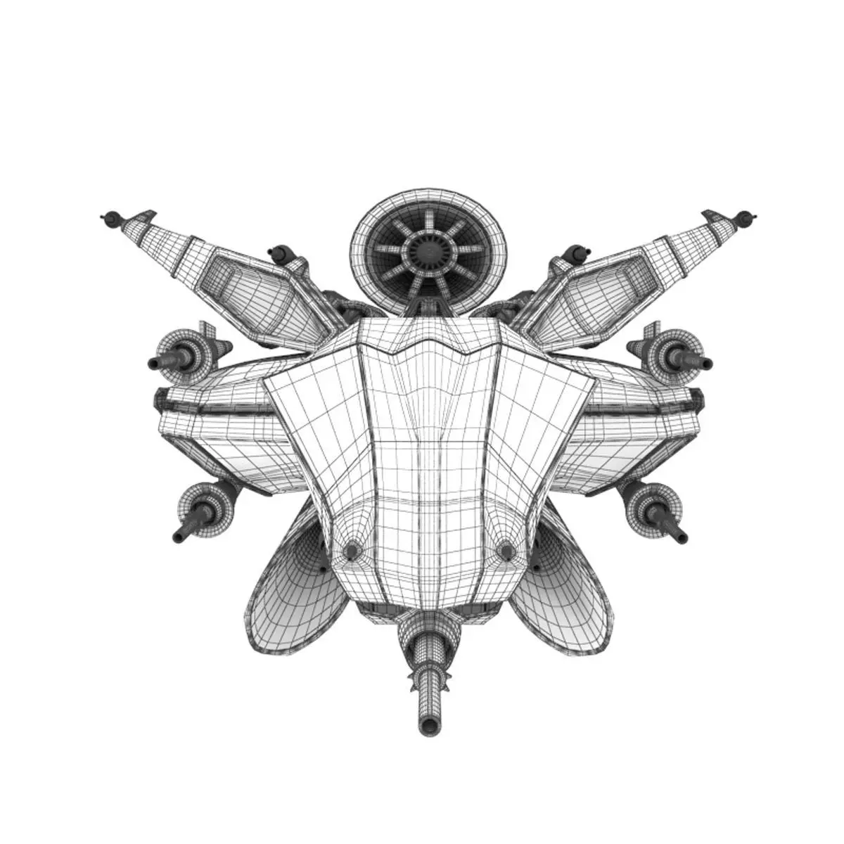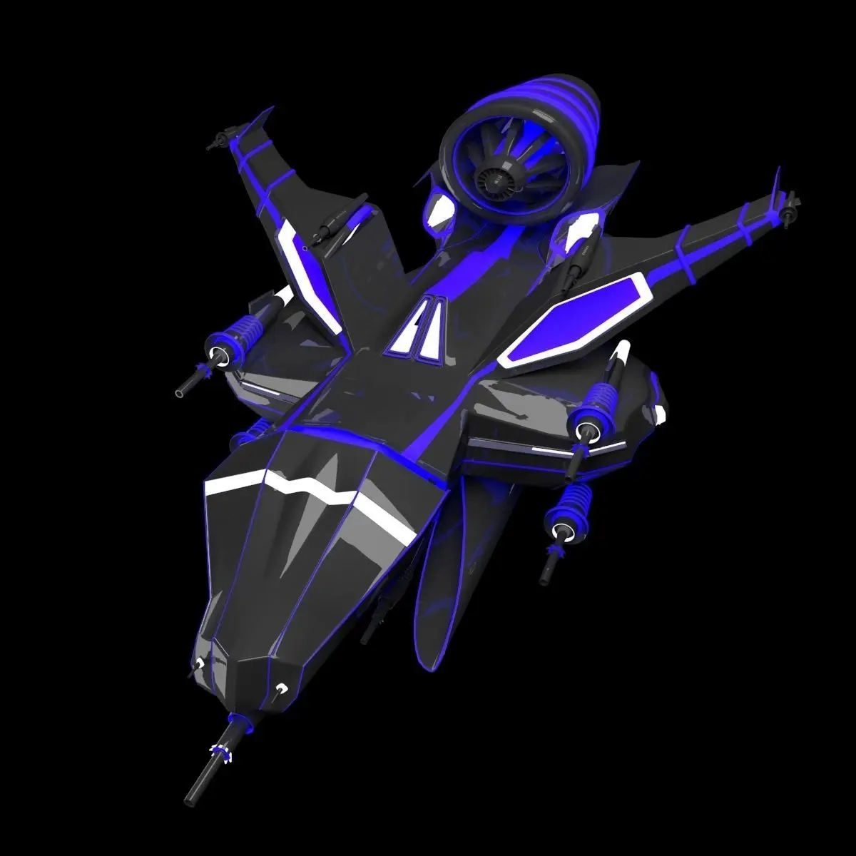Spacecraft, designed for video games, with vray textures without image texture, with illuminated lines