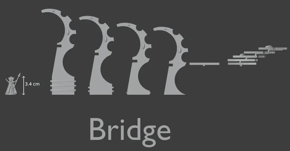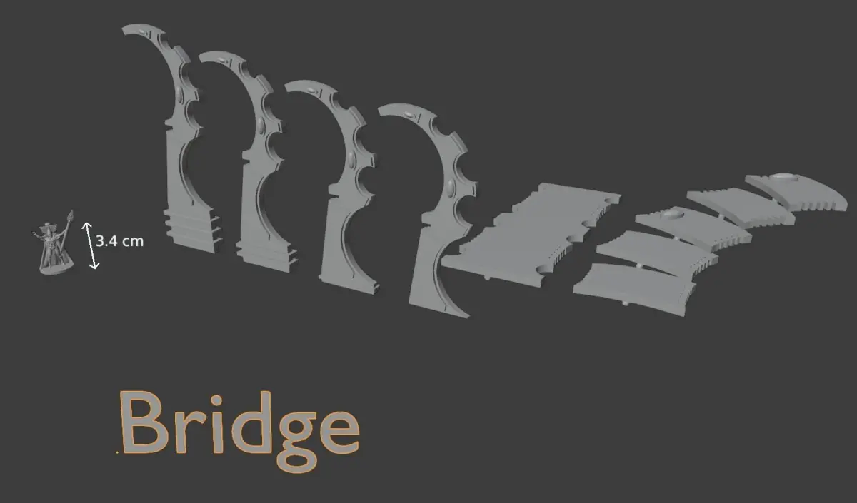 This is a complete bundle for space elf terrain. You will get a landing pad, headquarters, a bridge, some gates and walls. You can put them together in diferent positions. Also there are some extra accessories to spice things up. Every file have been printed on my ender 3 with default options and it looks good even in 0.28 layer but i suggest 0.2 with 12% infill, rafts and regular supports with 8%. You will not have any problems to print any of these. It is scaled for 28mm and 32mm miniatures. You can use this terrain as a base for your space elfs or for any sci fi dnd sessions. You can use the rafts as a base to stabilise your terrain. The walls are perfectly sized to be used as scatter terrain walls or as walls to the headquarter. Any miniatures show on pictures are used as a scale and are not included. The terrain is massive you can fill one half of the table or use some parts of it seperately.