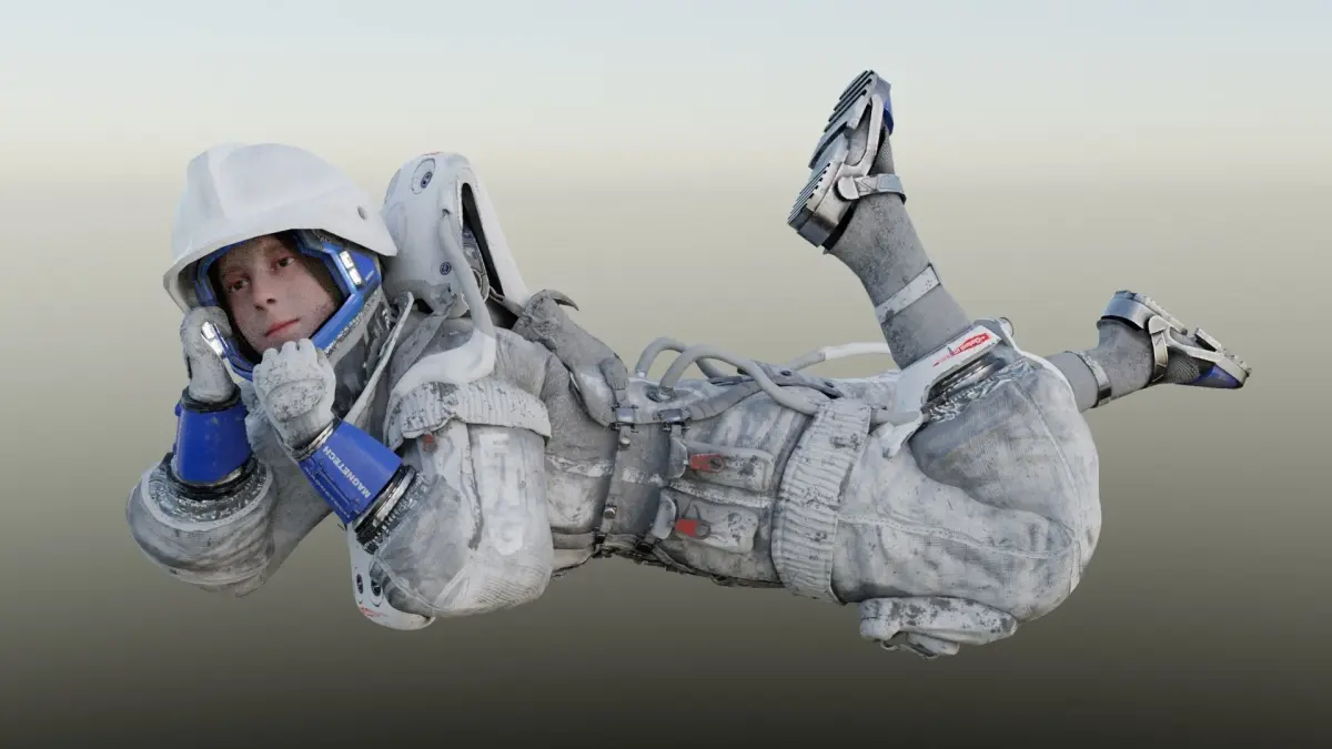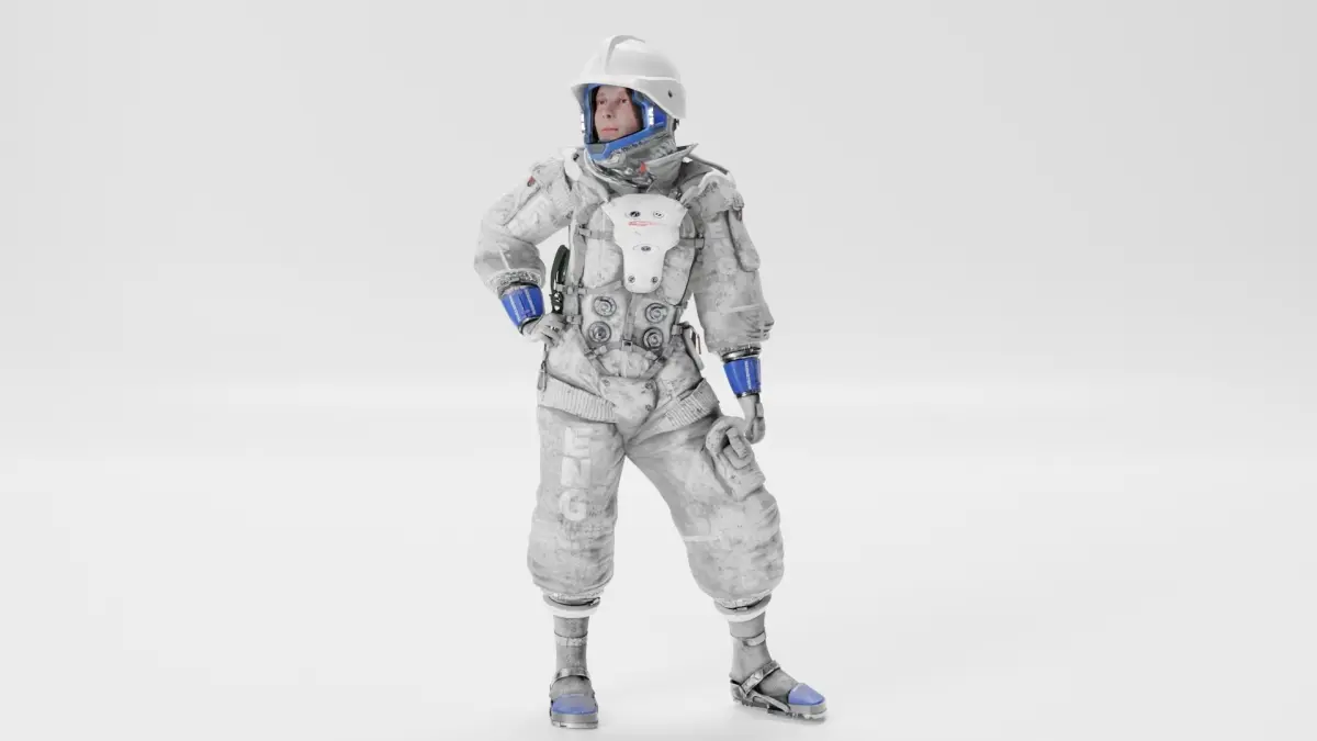 This is a space engineer. She moves in space with the help of small maneuvering engines on her backpack. Her spacesuit is worn out, but it copes with its task.