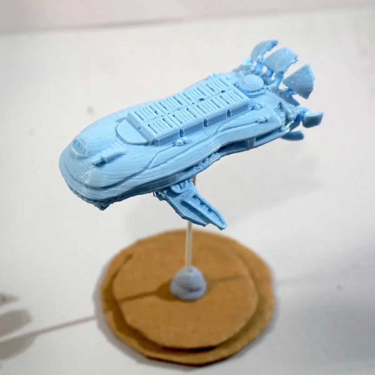 The Cetacea model space freighter. Capable of surviving in dense nebula and the atmosphere of gas giants.Featuring fins for propulsion when using the engines would cause an ignition of surrounding gases. During use, membranes would be extended to increase the surface area of each fin.The main engine has a segmented shroud for protection when travelling in dense environments.This freighter also has a forward facing hanger bay.