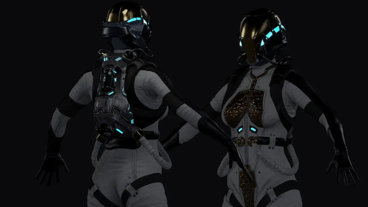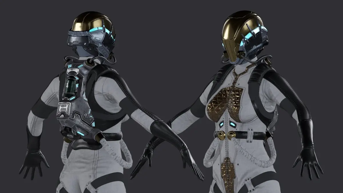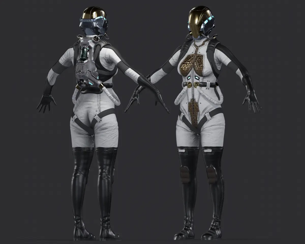 -Space_Girl .Game ready low-poly model,RIGGED: compatible with UE4 Epic Skeleton