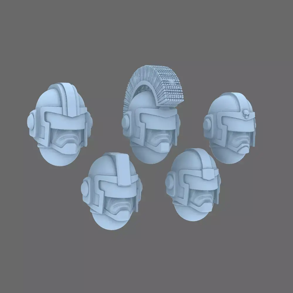 Come check out our Space Knights V1 Exterminator Judicator Style Helmet. These come with intricate 3D designs that make painting a breeze. This item comes with five different head conversion parts. This product is suitable for your favorite 28mm scale models of Grim Dark-themed Superhuman Armored Warriors of Humanity, like a Prime Master.