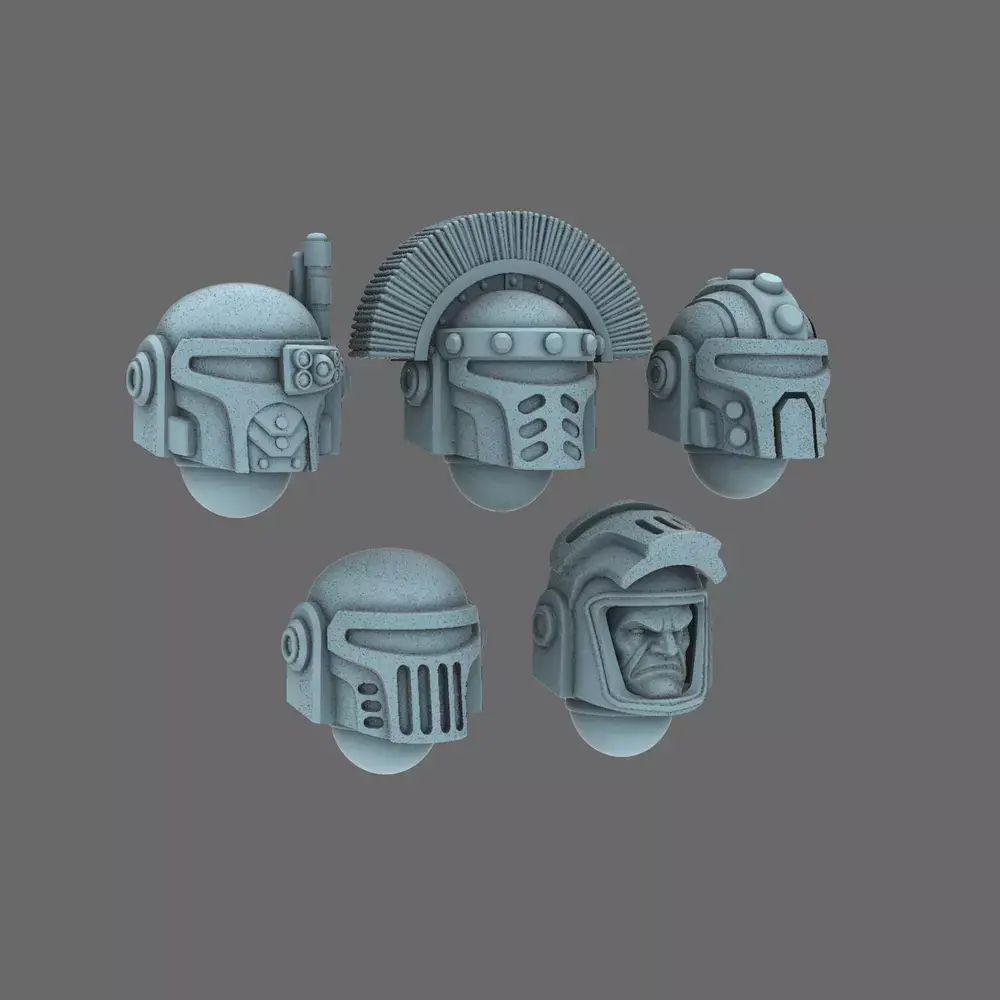 Come check out our Space Knights V2 Metal Storm Style Helmets. These come with intricate 3D designs that make painting a breeze. This product is suitable for your favorite 28mm scale models of Grim Dark-themed Superhuman Armored Warriors of Humanity, like a Prime Master.
