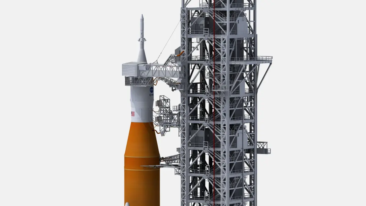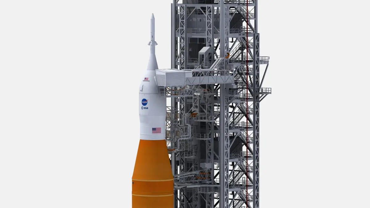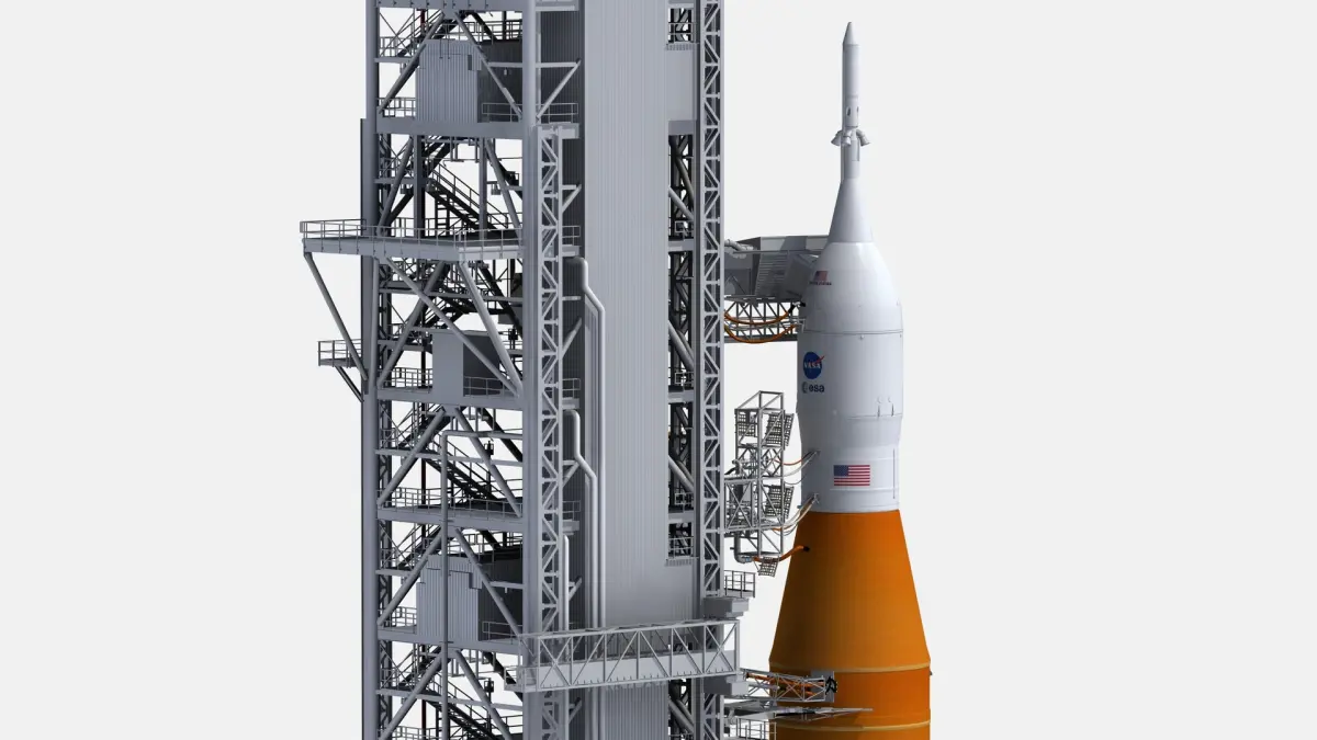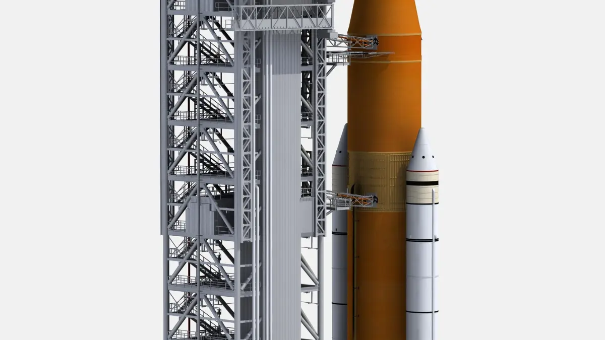 Very realistic and high detaled model of Space Launch System On Launchpad 39B