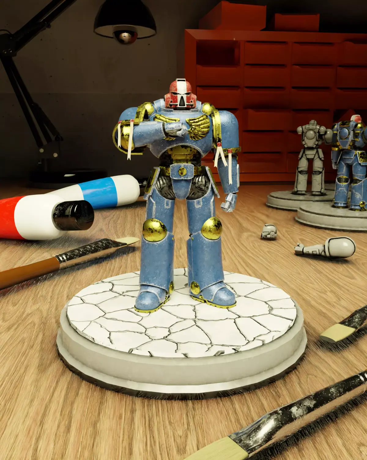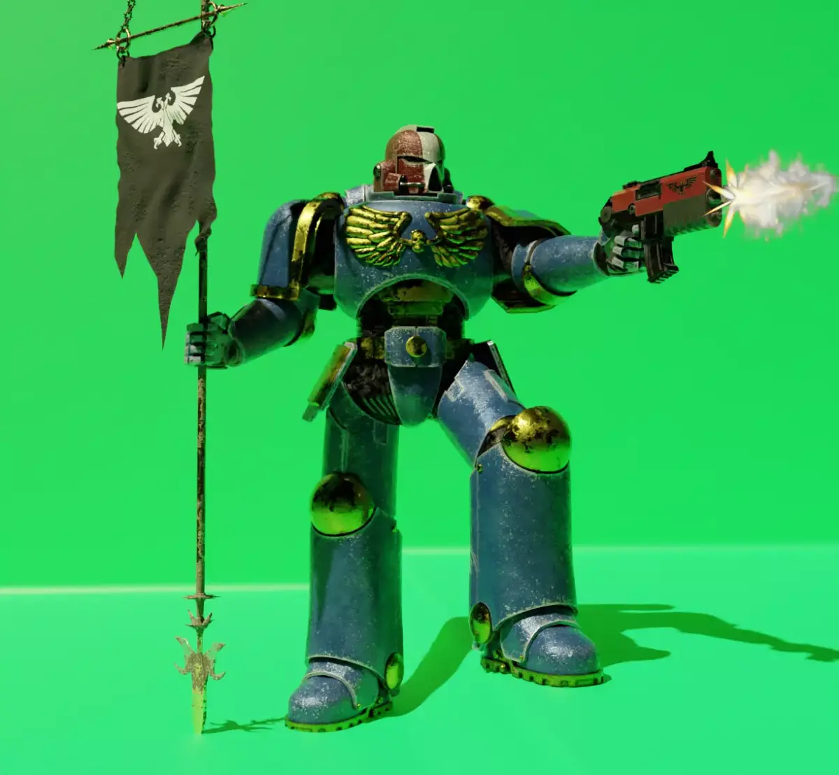 3D model of a Space Marine, created in Blender 4.2.1. The model comes fully rigged with an armature skeleton, making it ready for posing or animation.