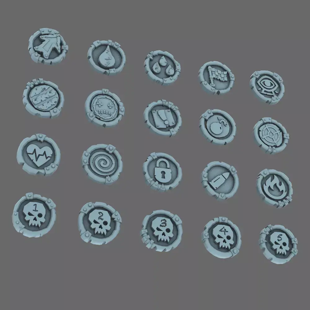Come check out our Space Orcs OPR Tokens. These come with intricate 3D designs that make painting a breeze. This set comes with fifteen indicator tokens and five objective markers, all made of orcy scrap metal. Each token is about 20mm across. This product is suitable for your favorite 28mm scale models of Grim Dark-themed Superhuman Armored Warriors of Humanity, like a Prime Master.