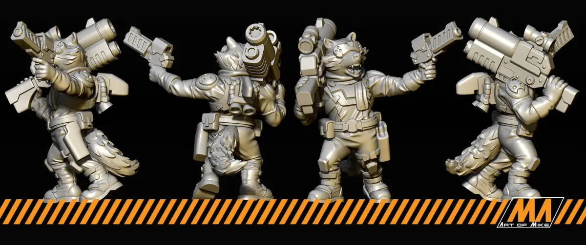 Mercenary space raccoon for your sci-fi tabletop gaming.