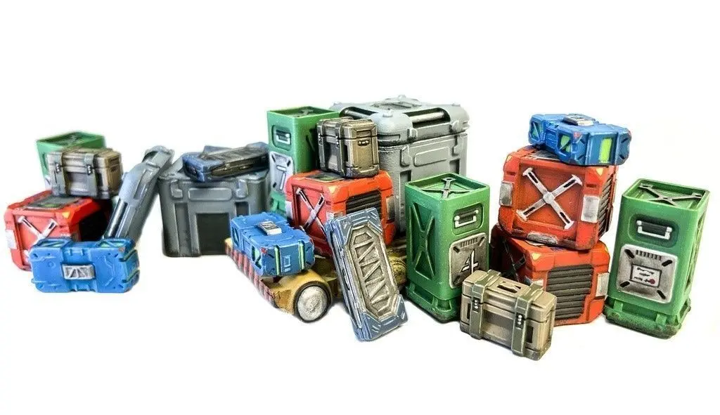 Crates, boxes, cases, robotic cart, and other storage stuff for your Space Station Hangar.