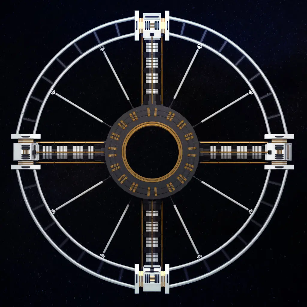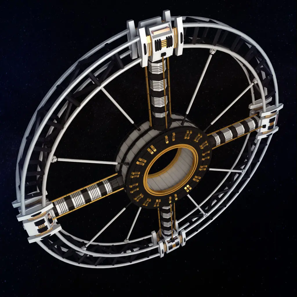 Medium poly 3d model of Space station torus sci-fi.