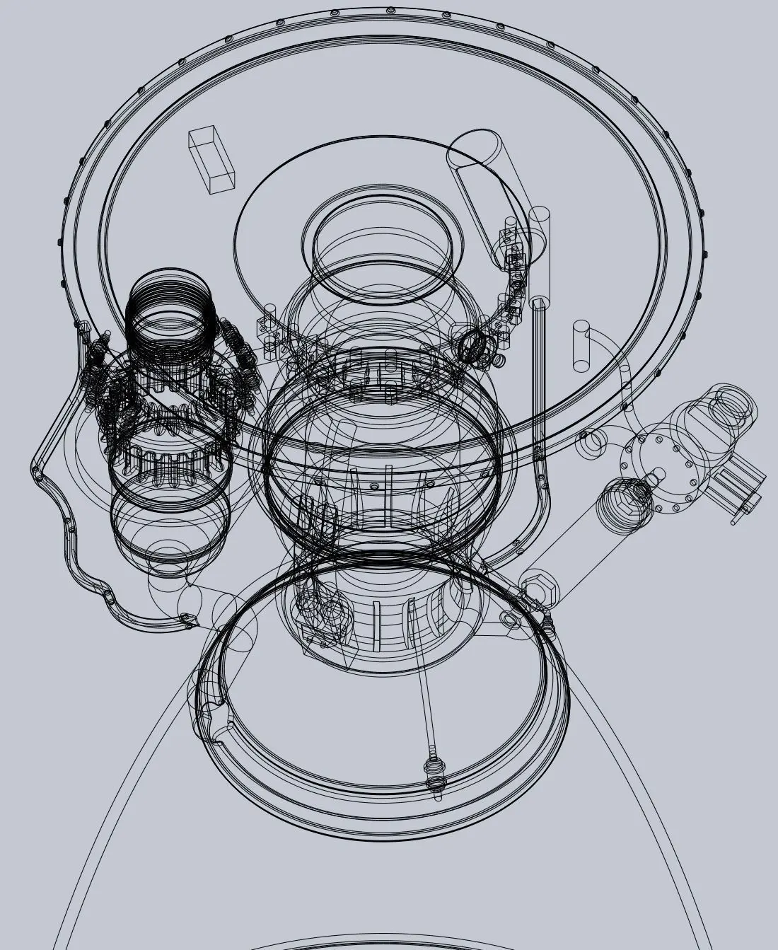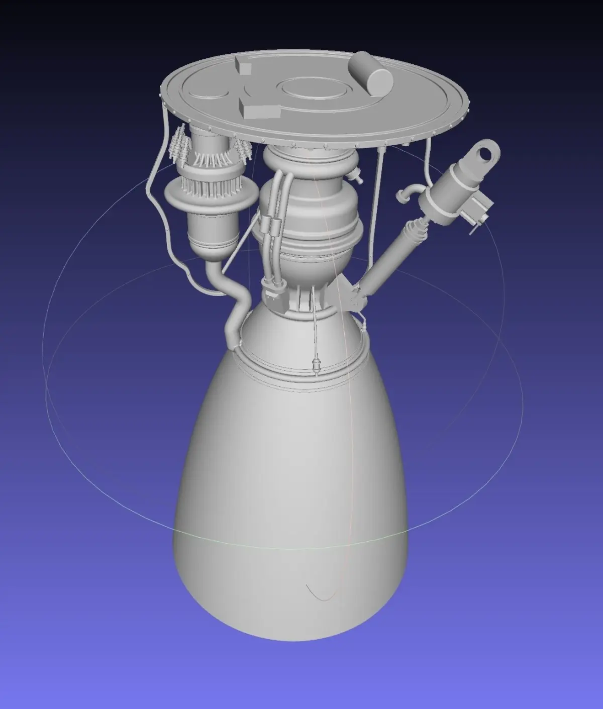 A rough model of the Raptor rocket engine developed by Space-X for the BFR/Starship system simplified and optimized for printingthe model is true scale meaning the lower engine bell diameter is about 1.3 meters but it's designed to be printed at about 1/10 scale with a regular nozzle diameter, thus details have been thickened or left out if htey are too small for thisThe Raptor is a conceptually optimized rocket engine combining thrust to weight ratio and efficiency with relatively easy to store fuels (compared to hydrogen) which can be acquired on mars since it is powered by liquid methane and liquid oxygen - in order to increase efficiency compared to other designs it also uses two turbopumps burning oppositely saturated mixtures allowing it to use the full energetic potential of the fuel without overheating the turbopump