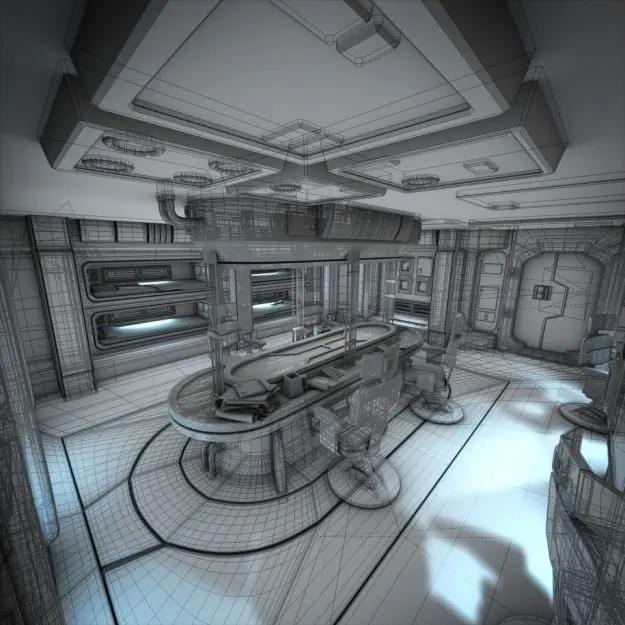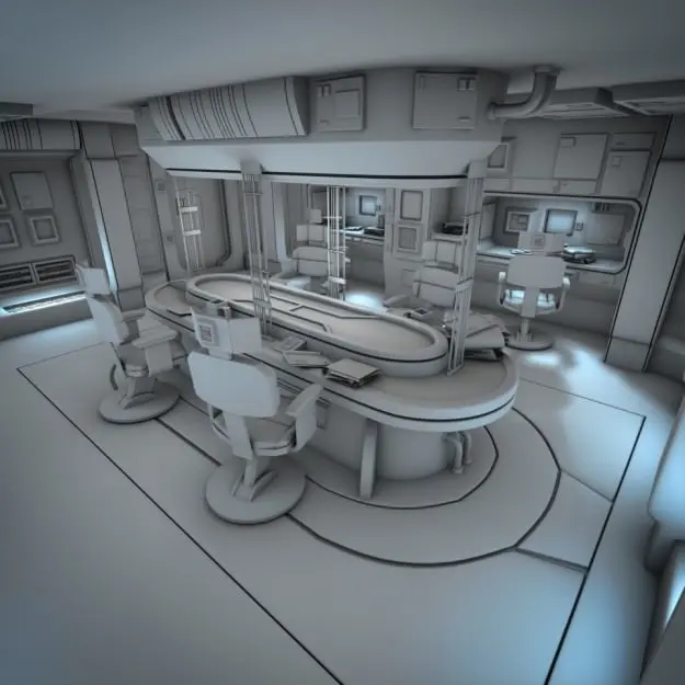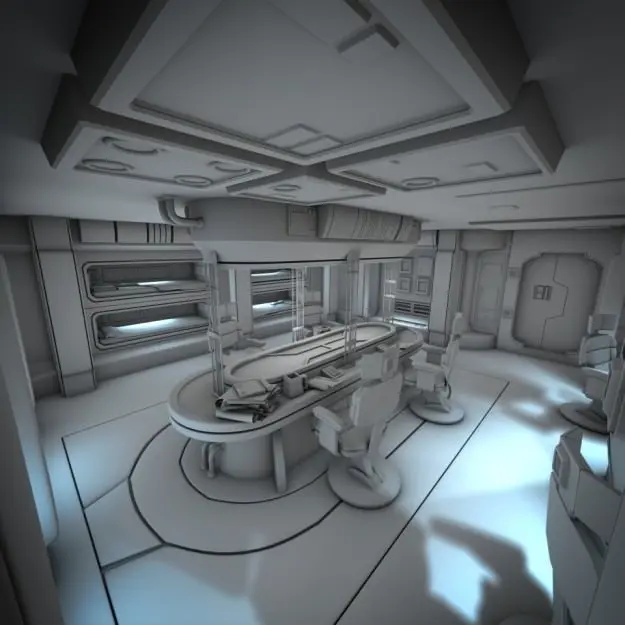 This is a highly detailed 3D model of a spaceship crew quarters, created in Blender 2.54 and exported to a variety of widely supported formats.