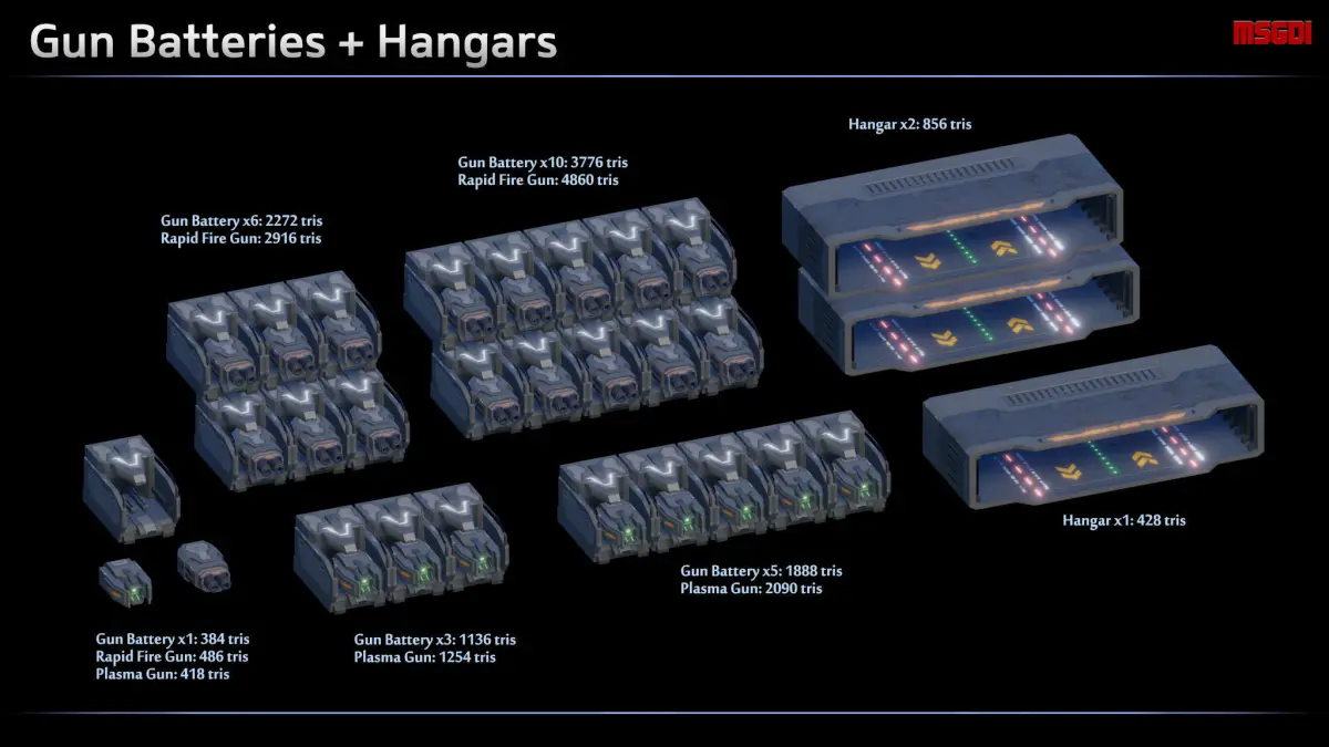 - Final tris count depends on how many weapons are used for the ship